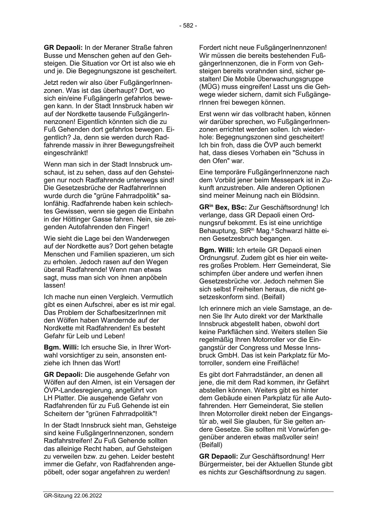 verlange, dass GR Depaoli einen Ordnungsruf bekommt. Es ist eine unrichtige