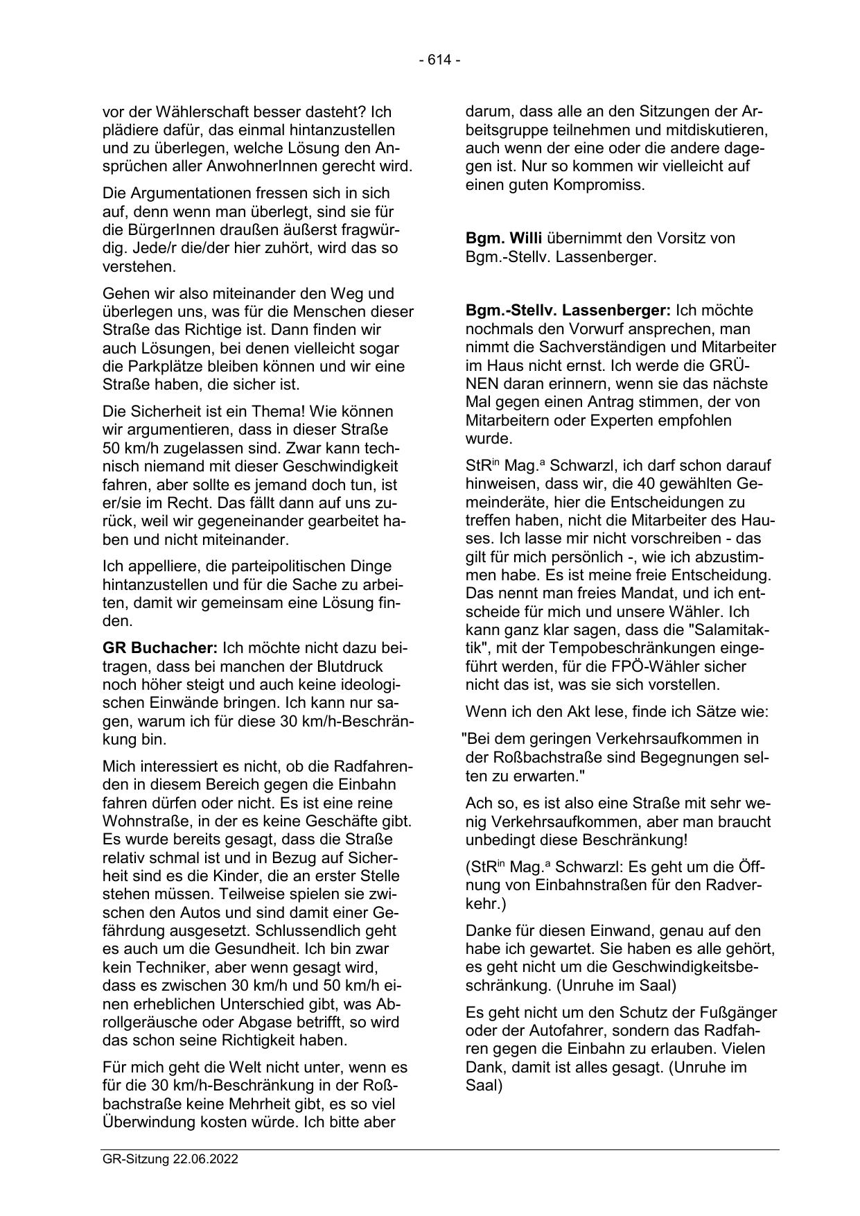 für die 30 km/h-Beschränkung in der Roßbachstraße keine Mehrheit gibt, es so viel