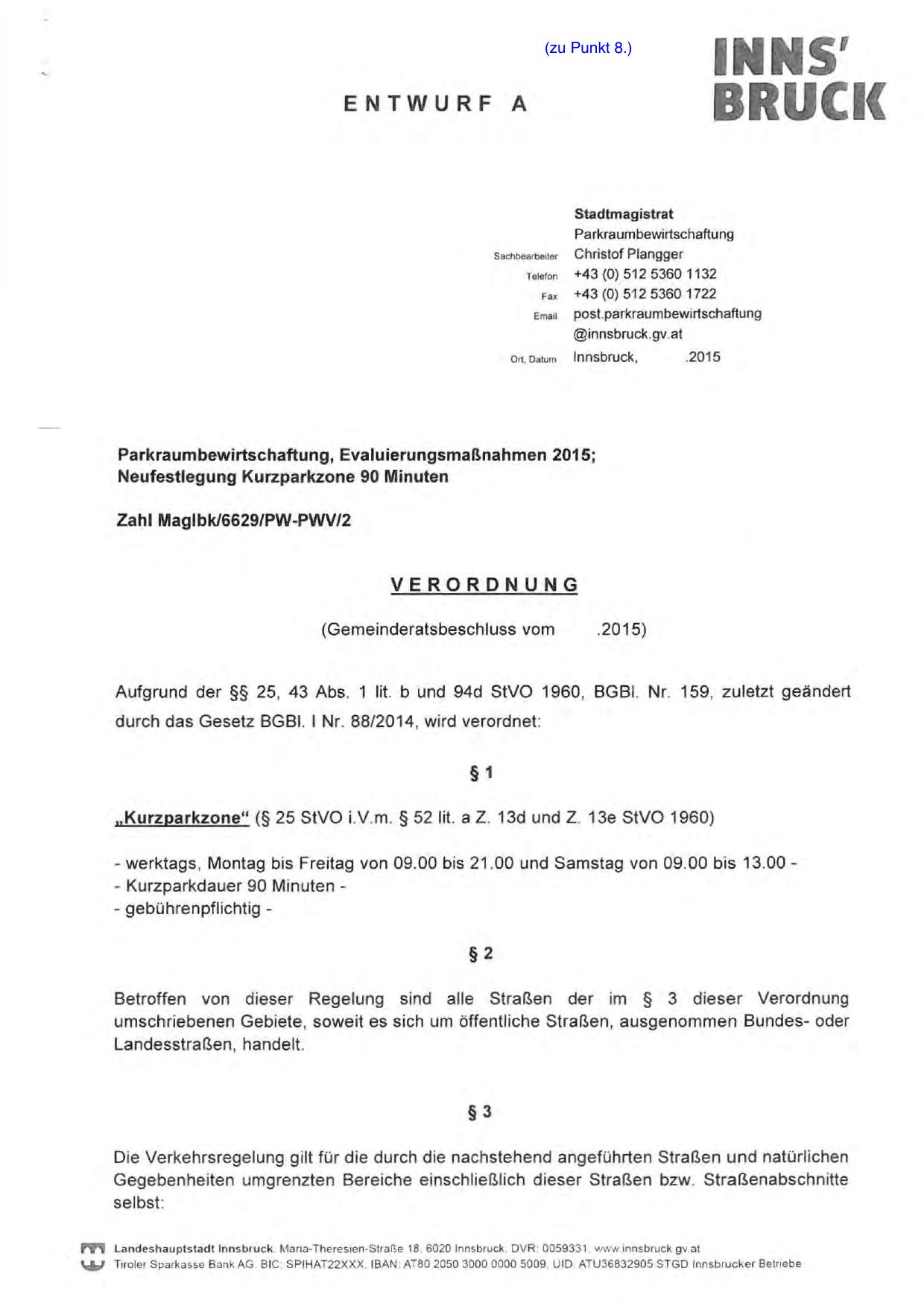 Parkraumbewirtschaftung, Evaluierungsmaßnahmen 2015;