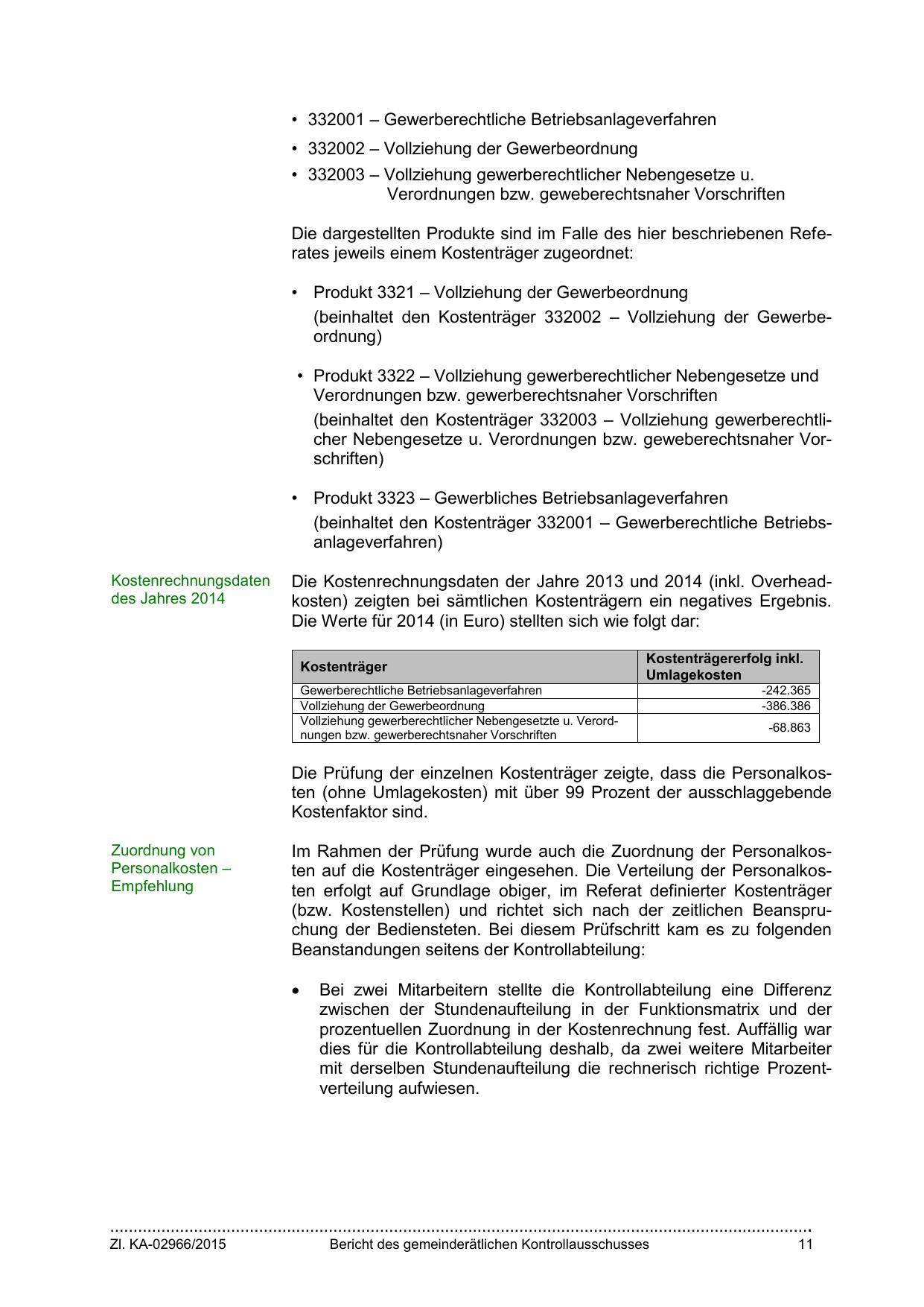 (bzw. Kostenstellen) und richtet sich nach der zeitlichen Beanspruchung der Bediensteten. Bei diesem Prüfschritt kam es zu folgenden