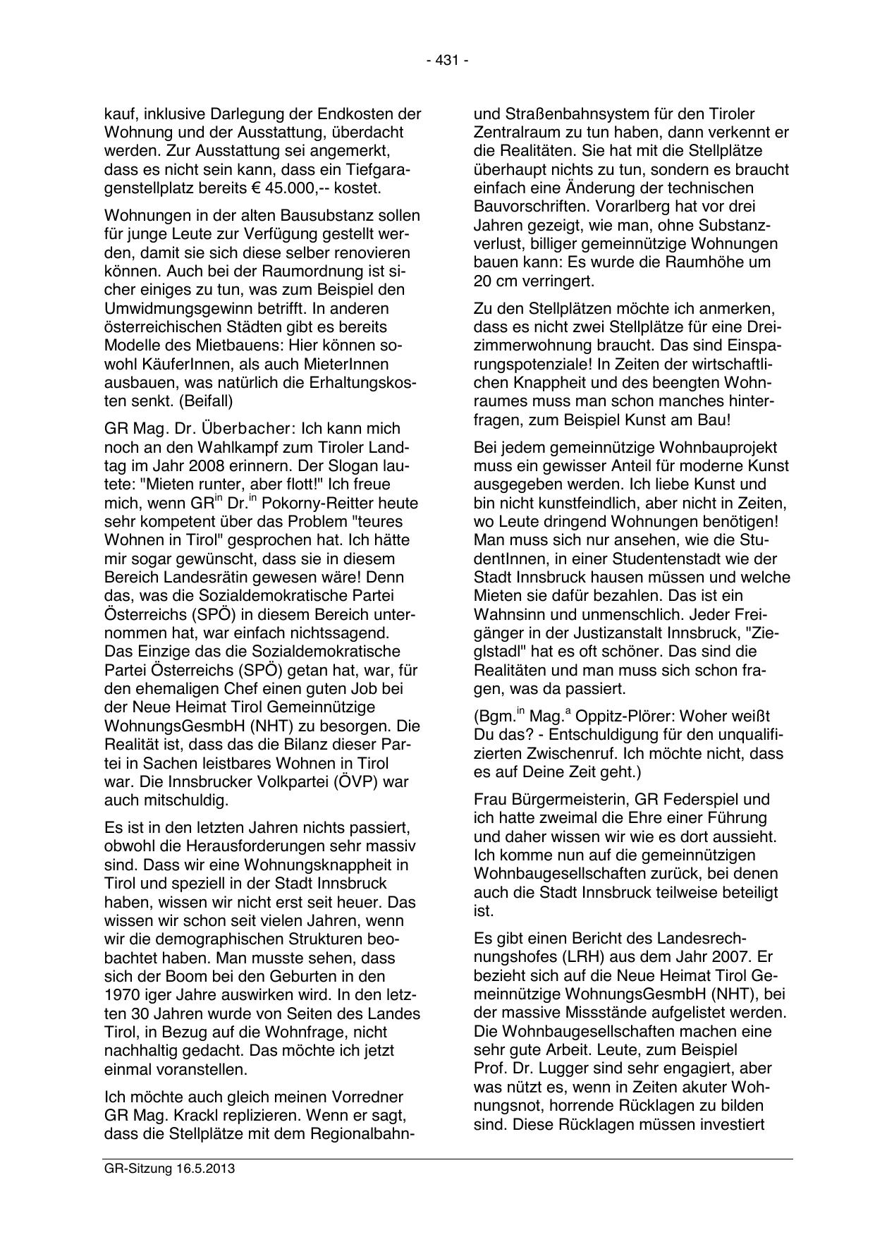 Wohnen in Tirol" gesprochen hat. Ich hätte
