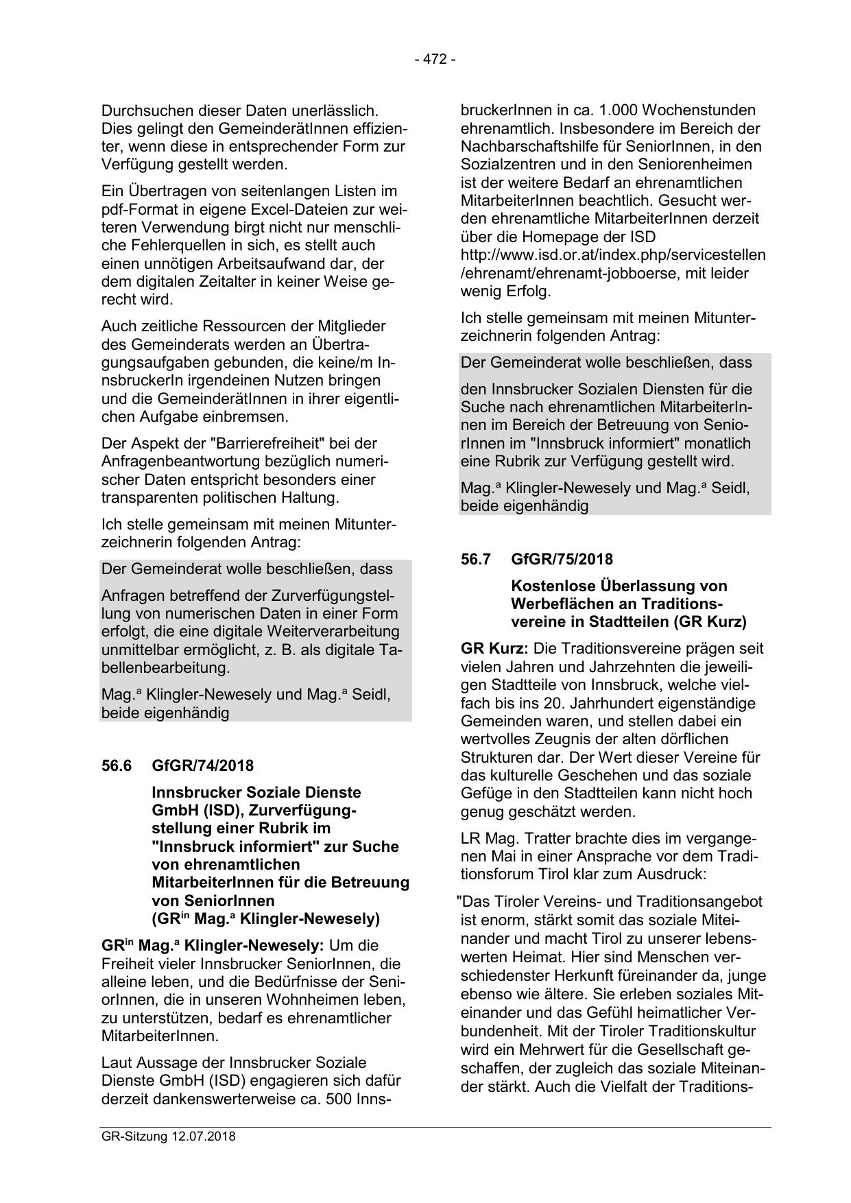 derzeit dankenswerterweise ca. 500 InnsGR-Sitzung 12.07.2018