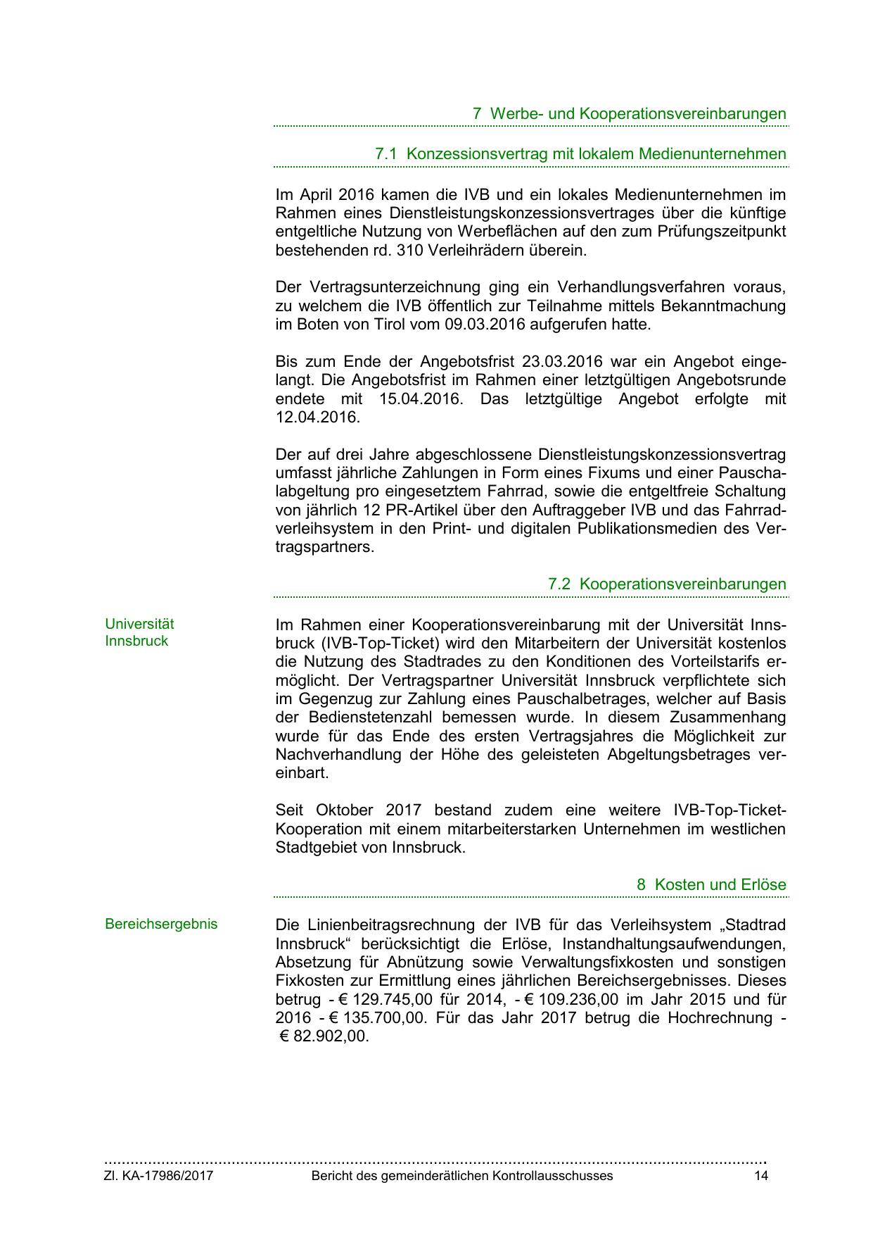 Innsbruck“ berücksichtigt die Erlöse, Instandhaltungsaufwendungen,