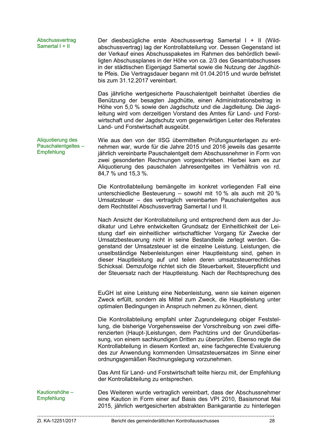 Der diesbezügliche erste Abschussvertrag Samertal I + II (Wildabschussvertrag) lag der Kontrollabteilung vor. Dessen Gegenstand ist