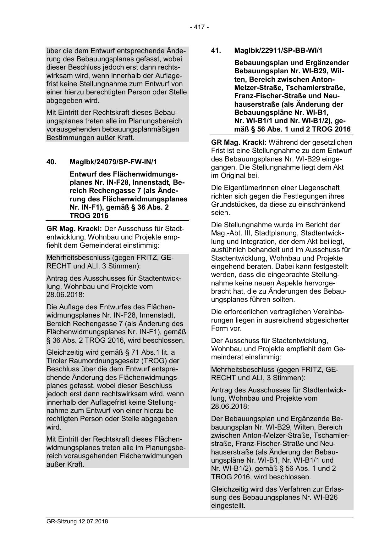 § 36 Abs. 2 TROG 2016, wird beschlossen.