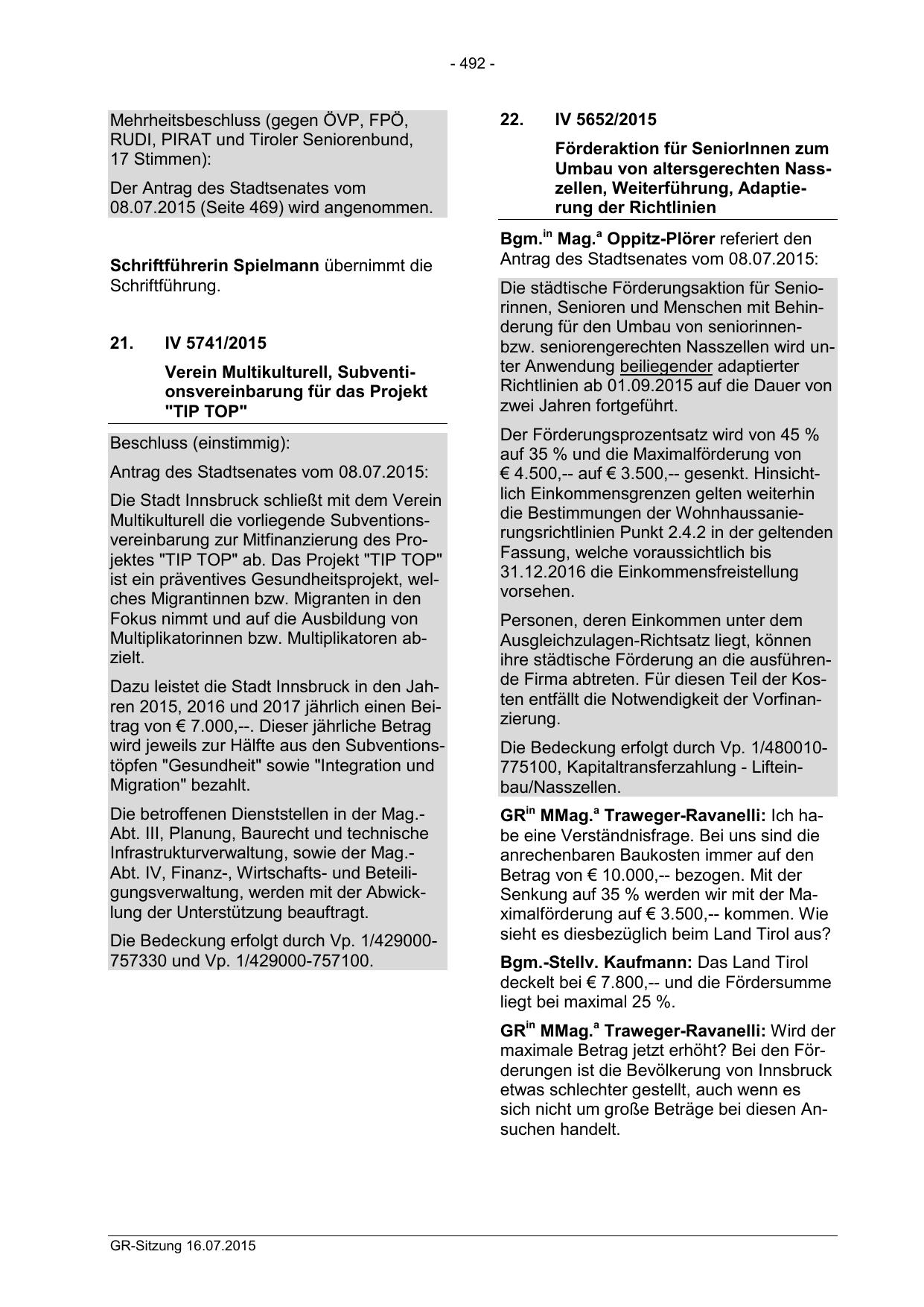 maximale Betrag jetzt erhöht? Bei den Förderungen ist die Bevölkerung von Innsbruck