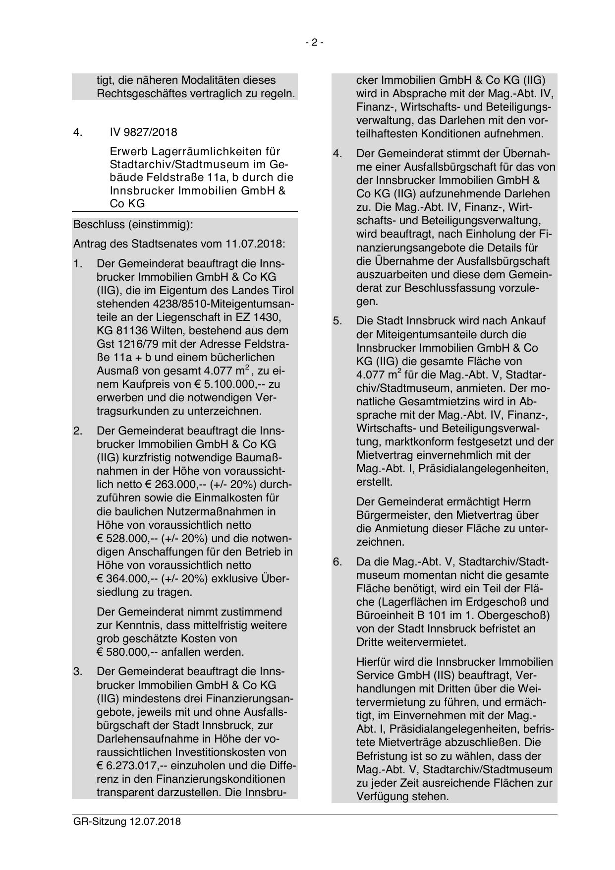 Der Gemeinderat beauftragt die Innsbrucker Immobilien GmbH & Co KG