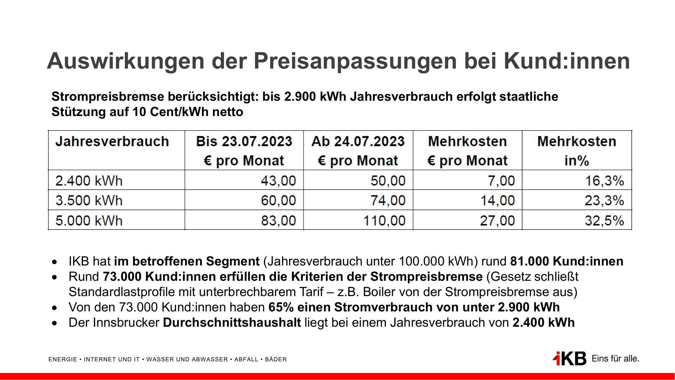 • Der Innsbrucker Durchschnittshaushalt liegt bei einem Jahresverbrauch von 2.400 kWh