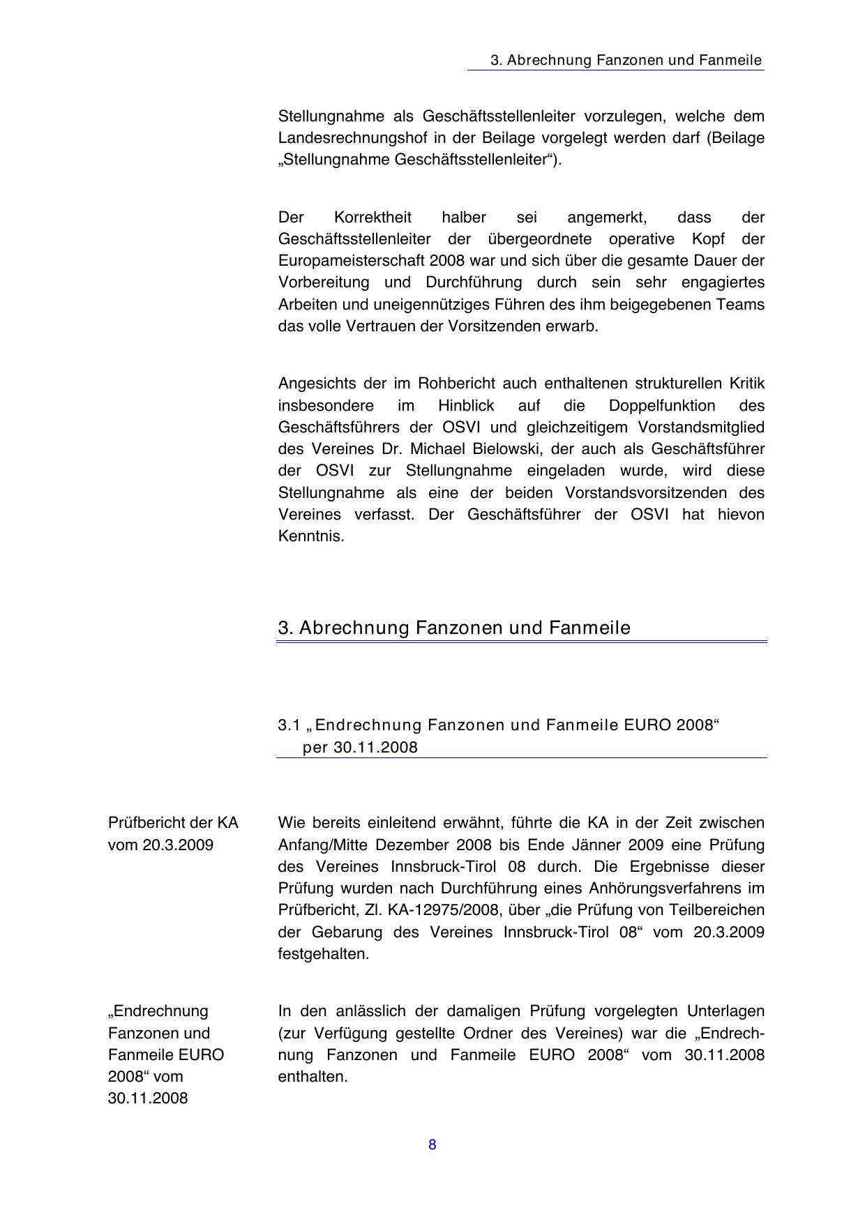 der Gebarung des Vereines Innsbruck-Tirol 08“ vom 20.3.2009