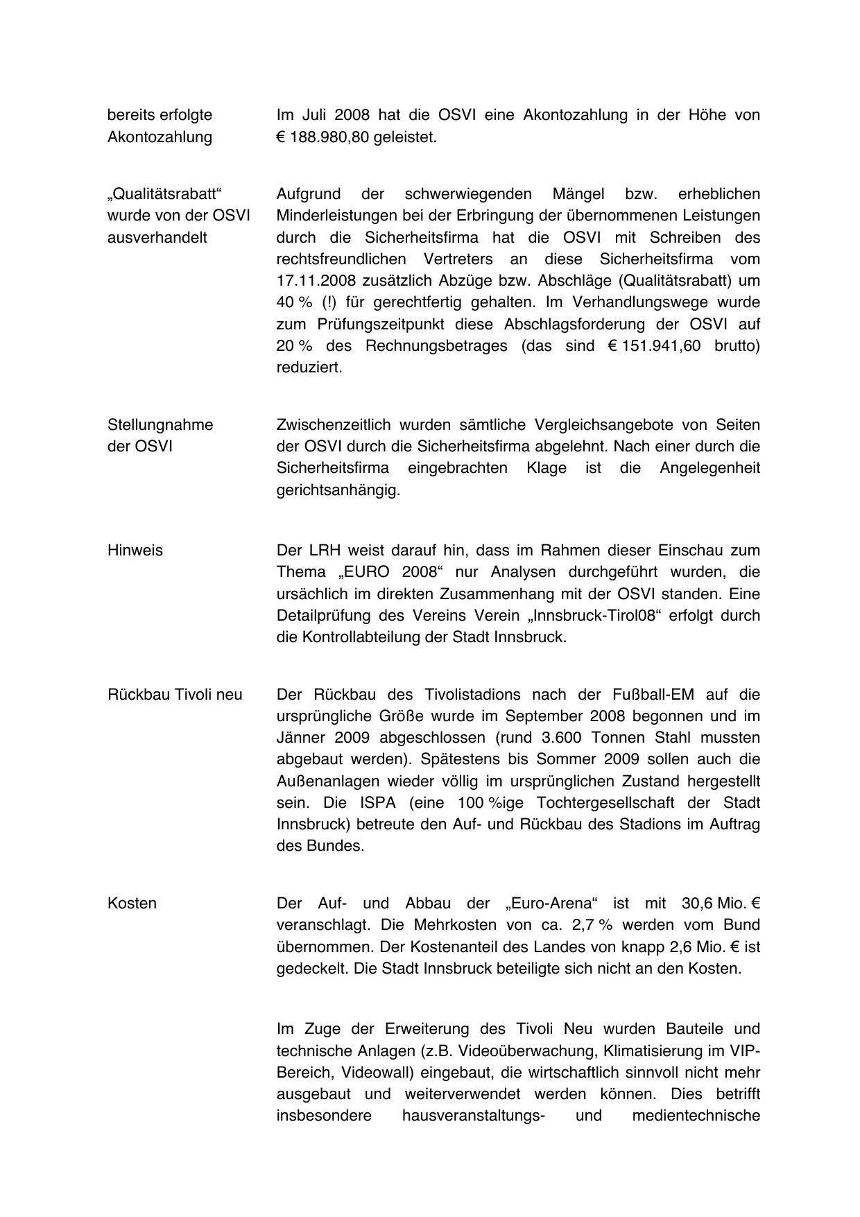 Detailprüfung des Vereins Verein „Innsbruck-Tirol08“ erfolgt durch