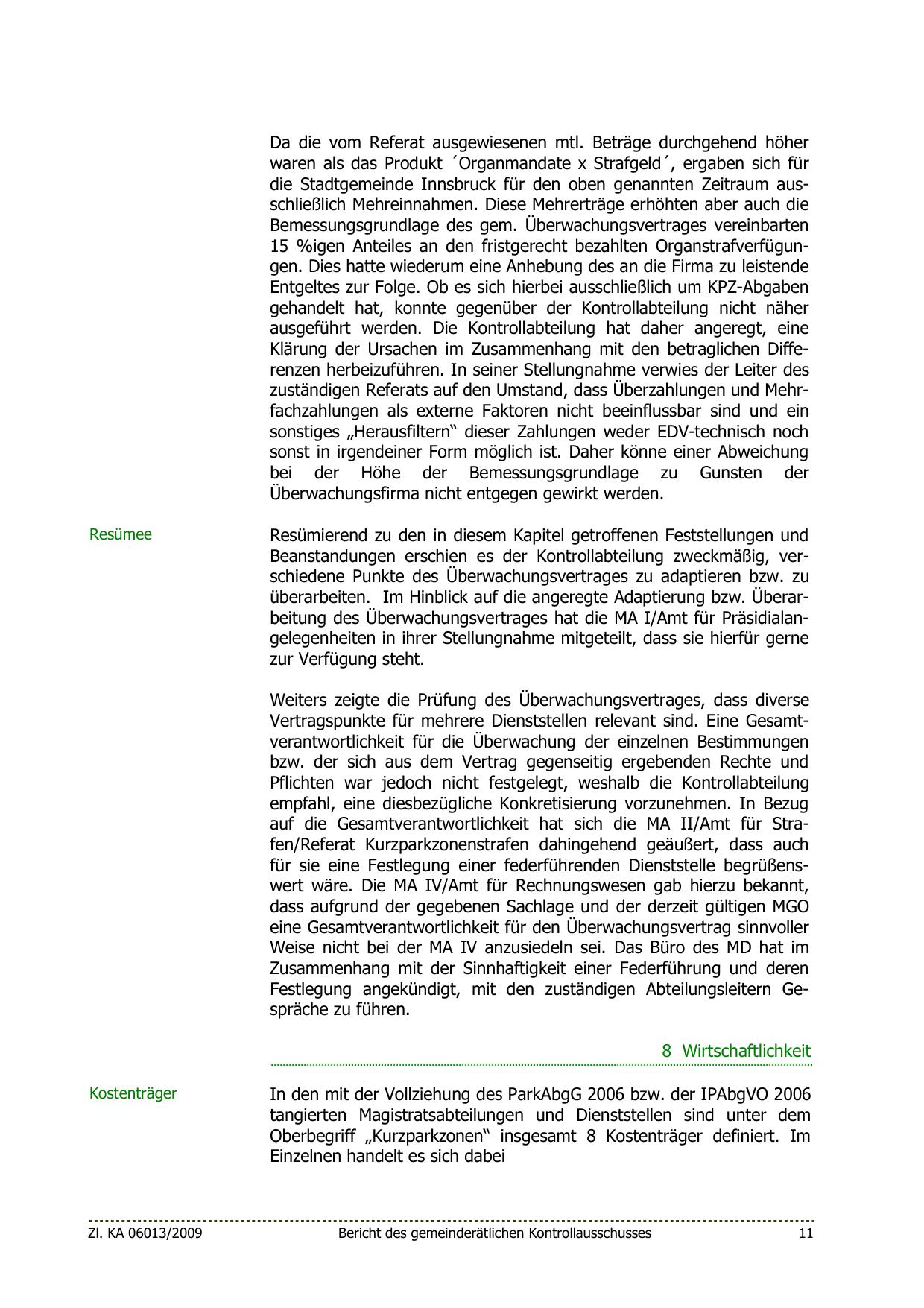Oberbegriff „Kurzparkzonen“ insgesamt 8 Kostenträger definiert. Im
