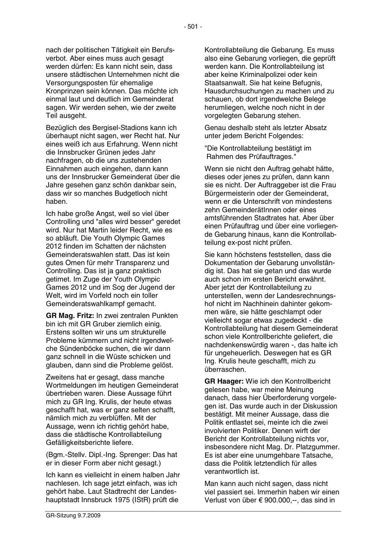 gehört habe. Laut Stadtrecht der Landeshauptstadt Innsbruck 1975 (IStR) prüft die