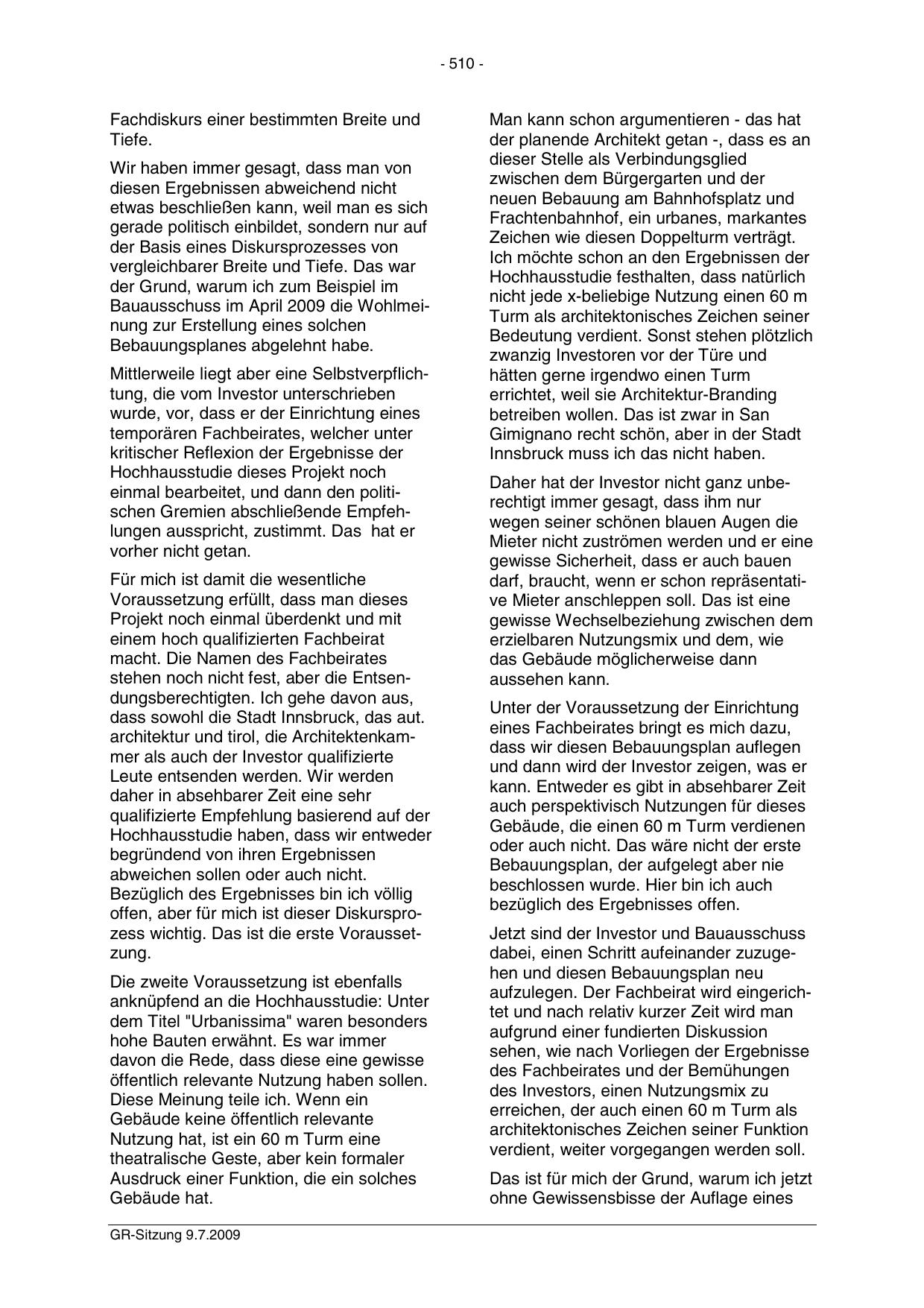einmal bearbeitet, und dann den politischen Gremien abschließende Empfehlungen ausspricht, zustimmt. Das hat er