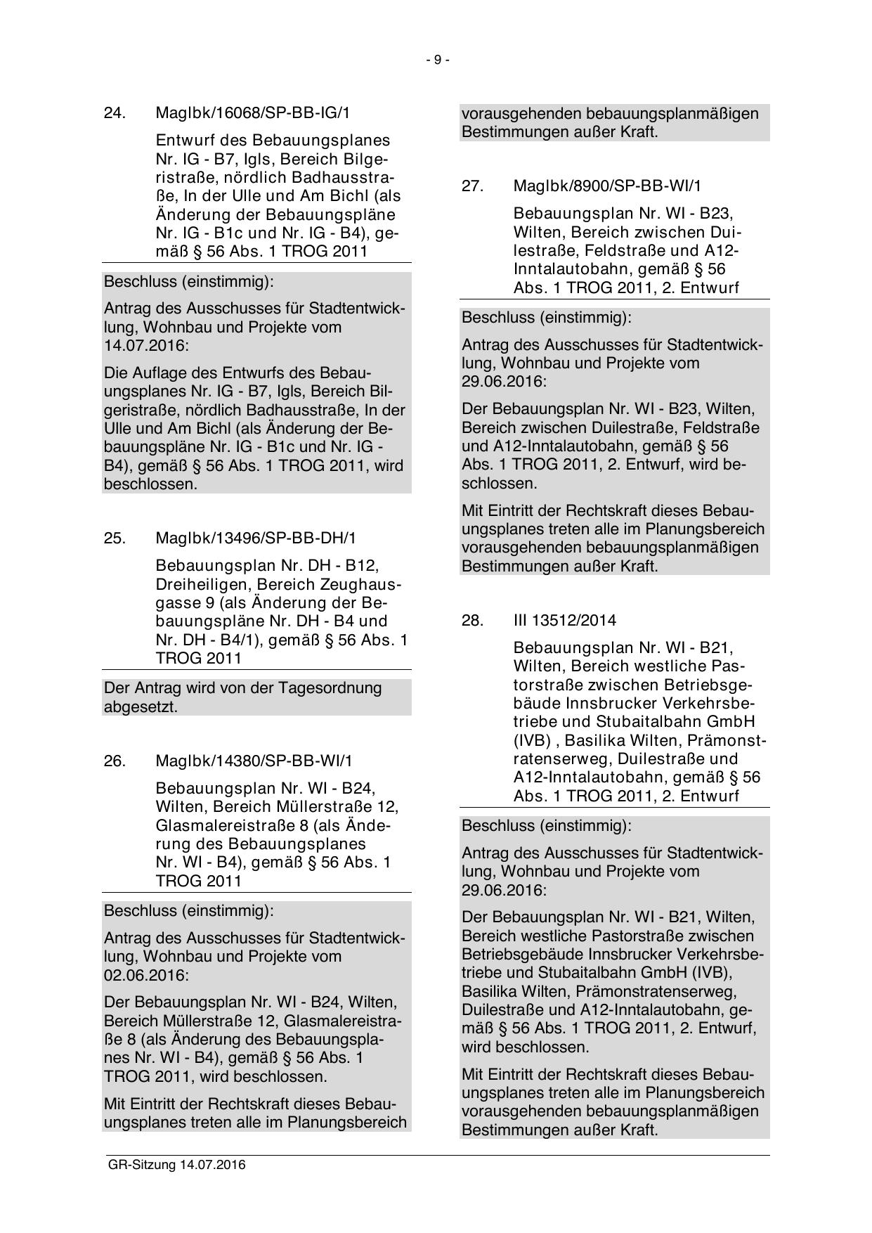 Der Bebauungsplan Nr. WI - B24, Wilten,