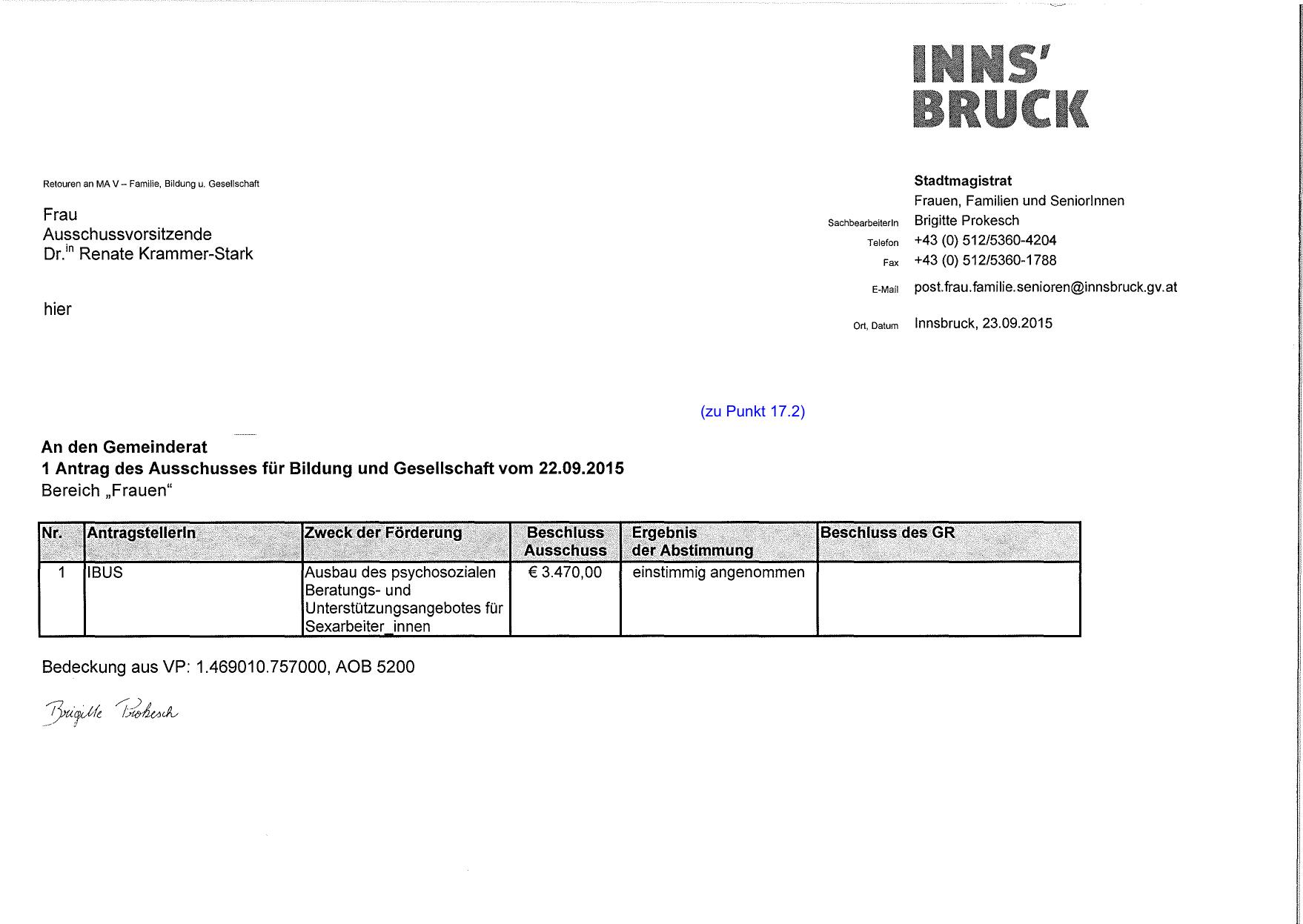 1 Antrag des Ausschusses für Bildung und Gesellschaft vom 22.09.2015