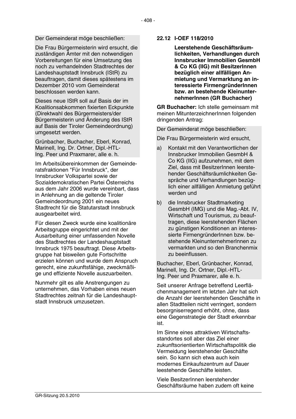 Stadtrechtes zeitnah für die Landeshauptstadt Innsbruck umzusetzen.