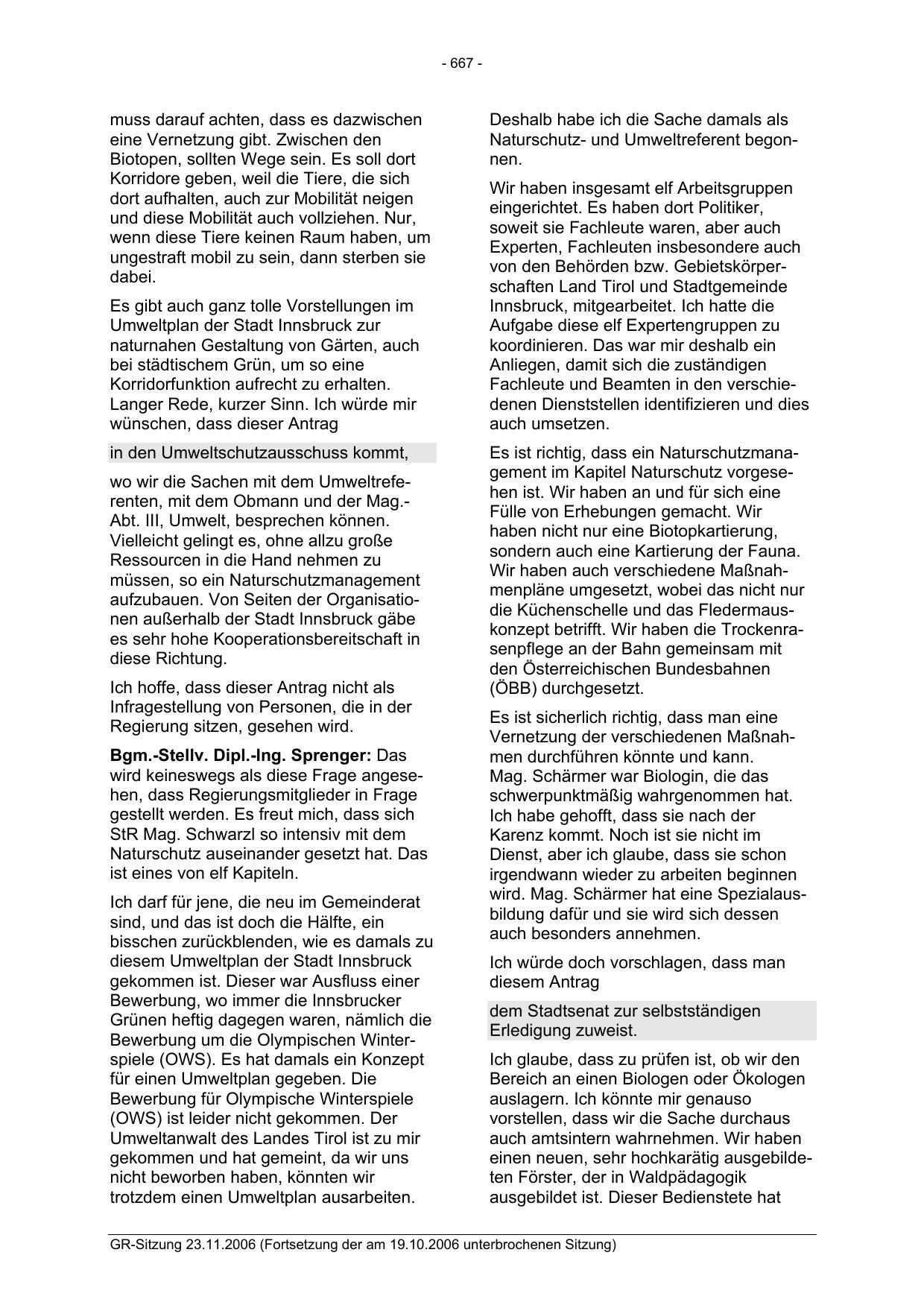 GR-Sitzung 23.11.2006 (Fortsetzung der am 19.10.2006 unterbrochenen Sitzung)