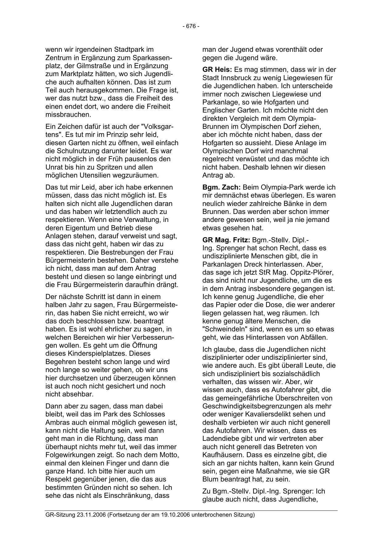 GR-Sitzung 23.11.2006 (Fortsetzung der am 19.10.2006 unterbrochenen Sitzung)