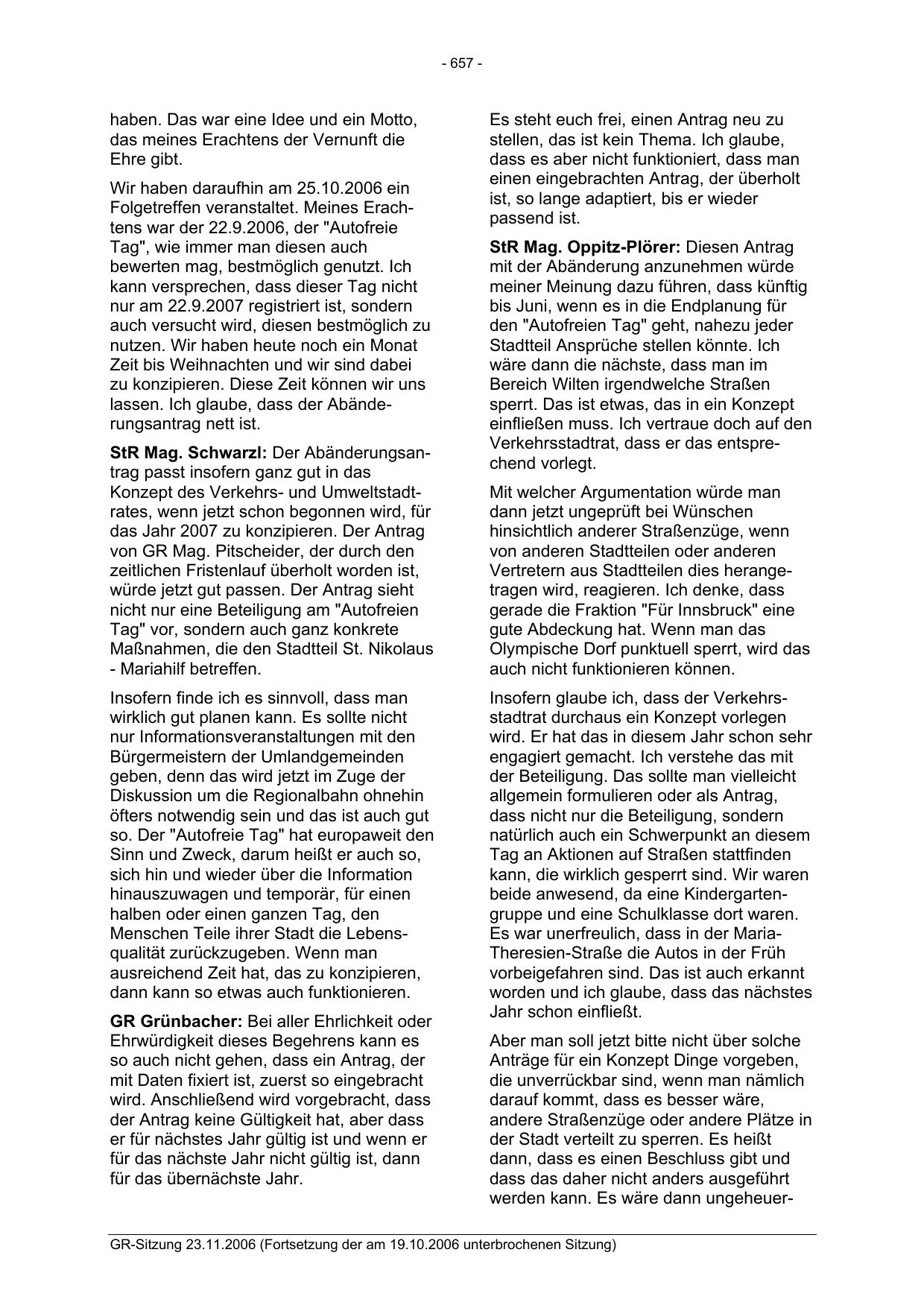 GR-Sitzung 23.11.2006 (Fortsetzung der am 19.10.2006 unterbrochenen Sitzung)