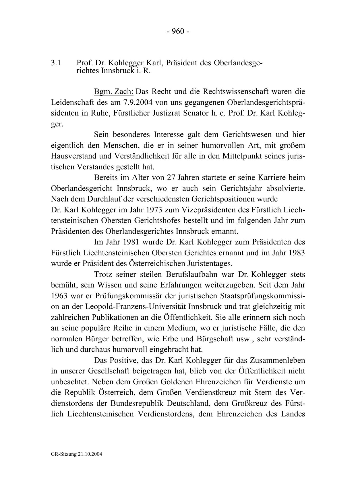 Leidenschaft des am 7.9.2004 von uns gegangenen Oberlandesgerichtspräsidenten in Ruhe, Fürstlicher Justizrat Senator h. c. Prof. Dr. Karl Kohlegger.