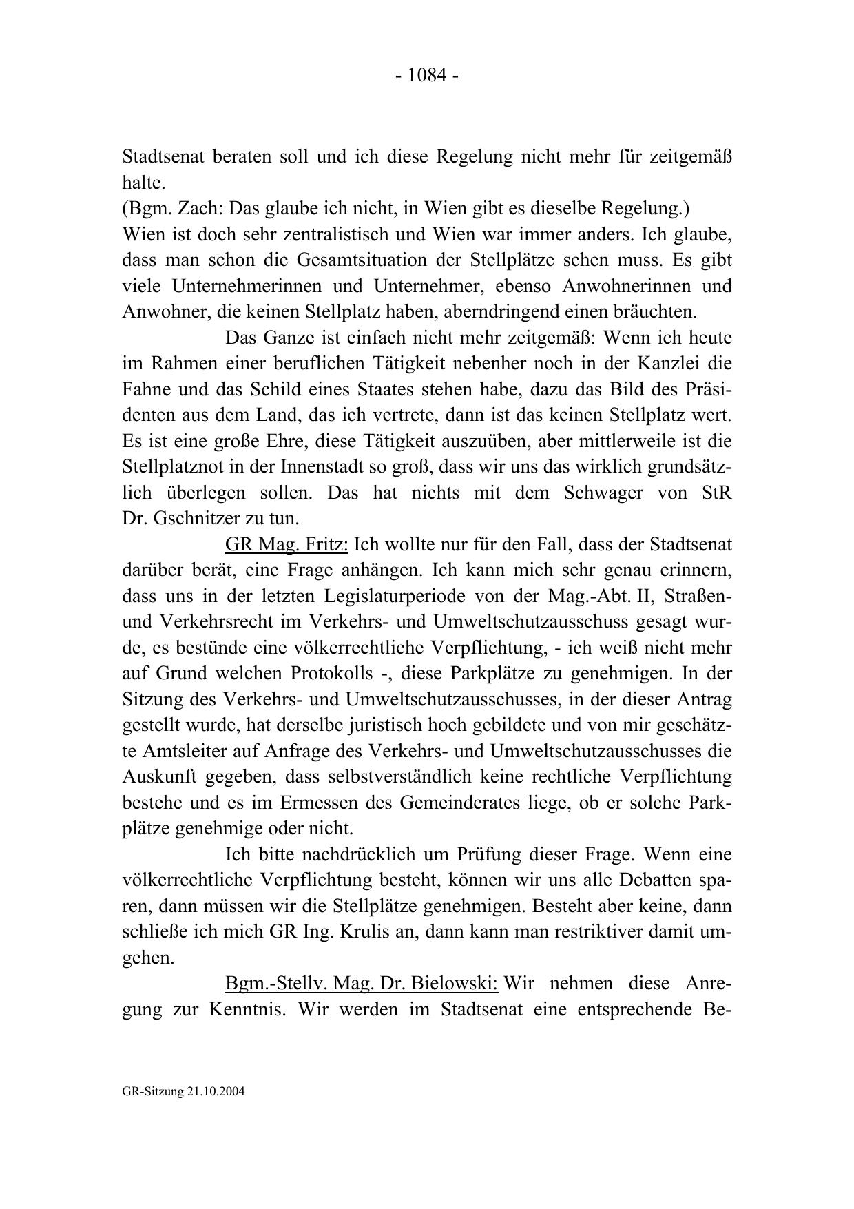 dass uns in der letzten Legislaturperiode von der Mag.-Abt. II, Straßenund Verkehrsrecht im Verkehrs- und Umweltschutzausschuss gesagt wurde, es bestünde eine völkerrechtliche Verpflichtung, - ich weiß nicht mehr