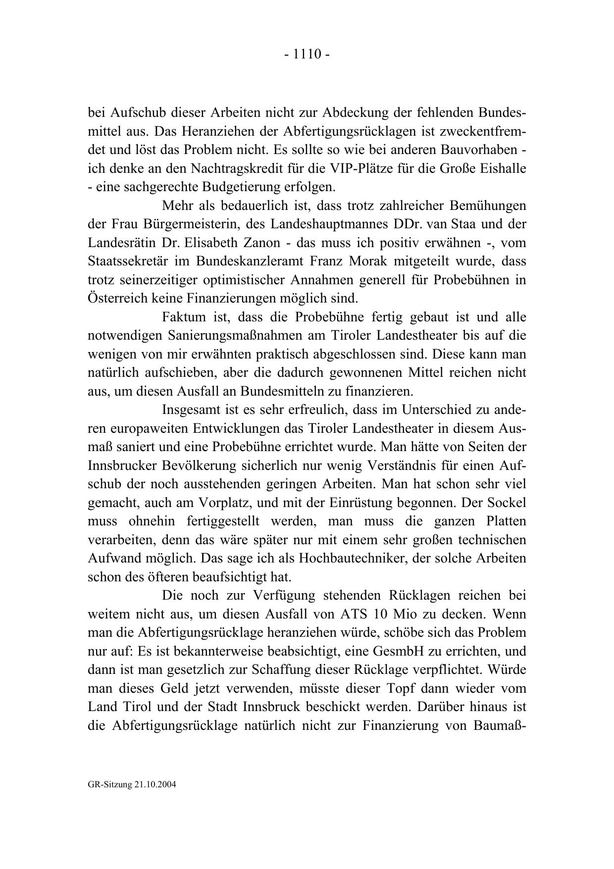 bei Aufschub dieser Arbeiten nicht zur Abdeckung der fehlenden Bundesmittel aus. Das Heranziehen der Abfertigungsrücklagen ist zweckentfremdet und löst das Problem nicht. Es sollte so wie bei anderen Bauvorhaben ich denke an den Nachtragskredit für die VIP-Plätze für die Große Eishalle