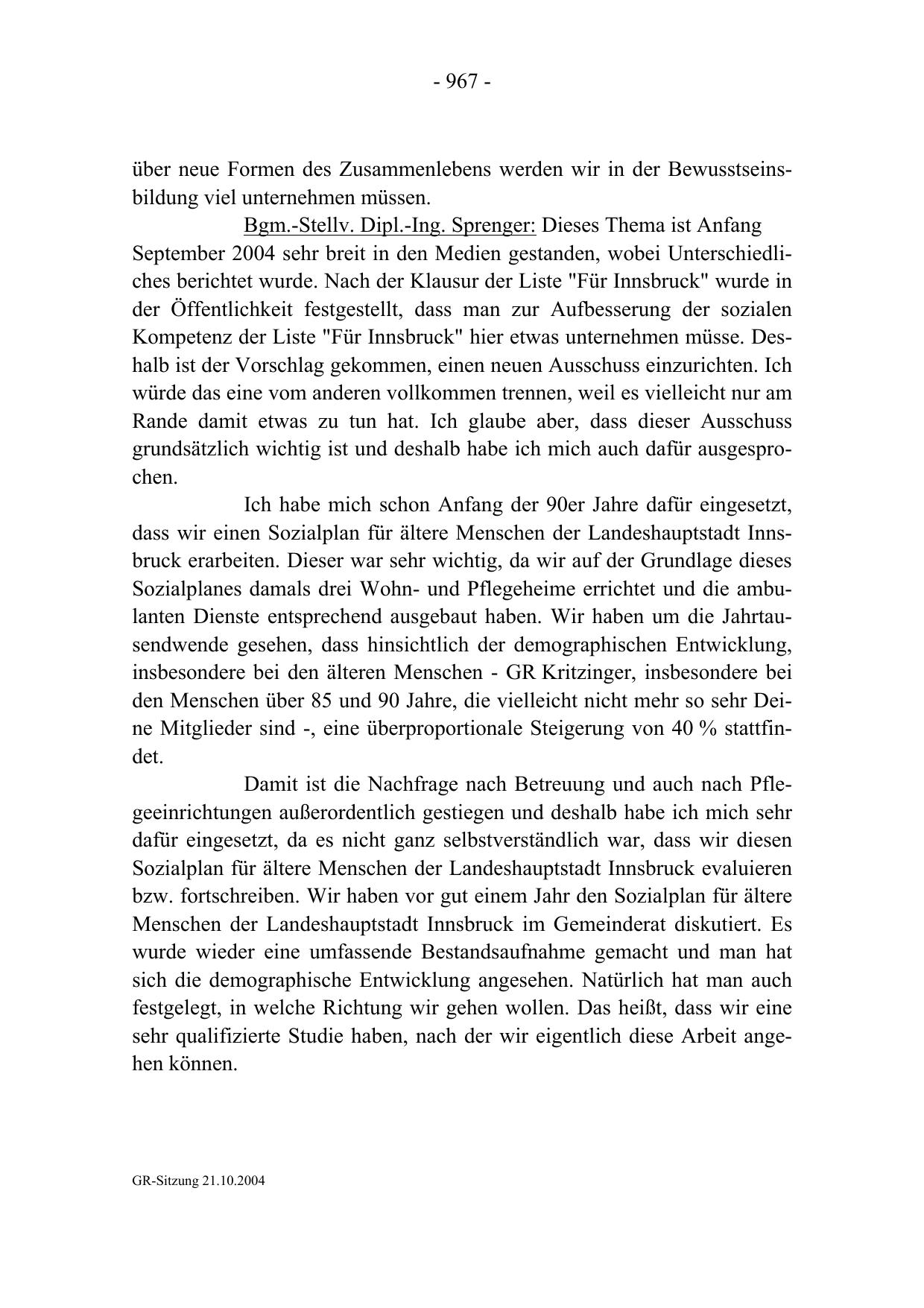 dass wir einen Sozialplan für ältere Menschen der Landeshauptstadt Innsbruck erarbeiten. Dieser war sehr wichtig, da wir auf der Grundlage dieses