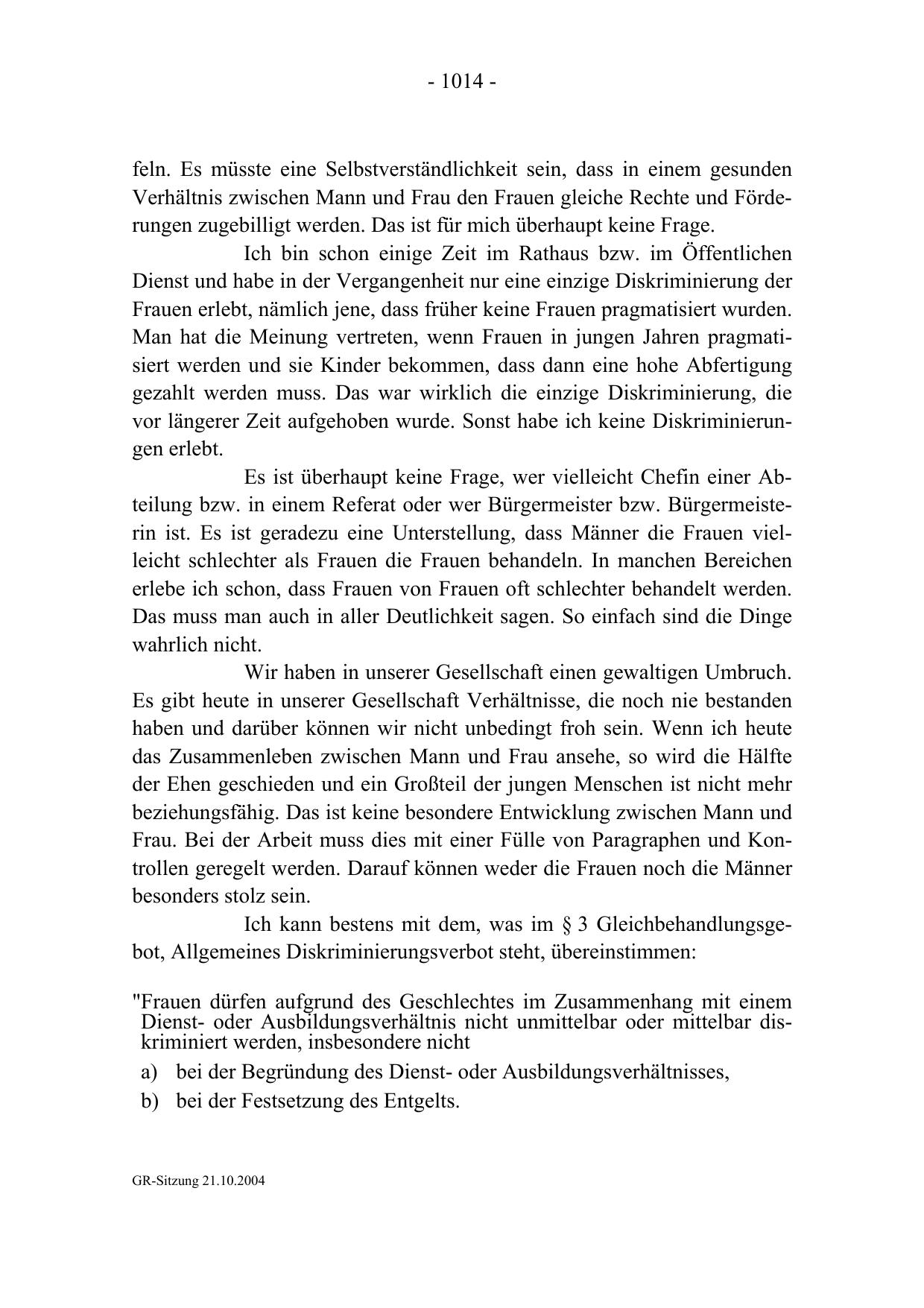 Es ist überhaupt keine Frage, wer vielleicht Chefin einer Abteilung bzw. in einem Referat oder wer Bürgermeister bzw. Bürgermeisterin ist. Es ist geradezu eine Unterstellung, dass Männer die Frauen vielleicht schlechter als Frauen die Frauen behandeln. In manchen Bereichen