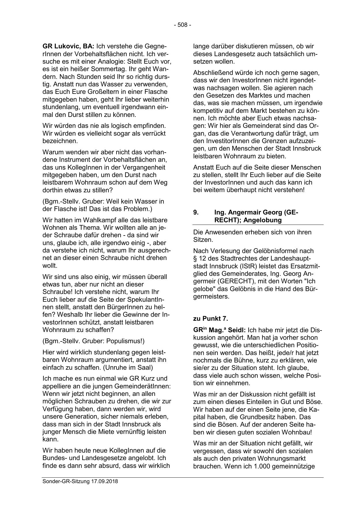 § 12 des Stadtrechtes der Landeshauptstadt Innsbruck (IStR) leistet das Ersatzmitglied des Gemeinderates, Ing. Georg Angermeir (GERECHT), mit den Worten "Ich