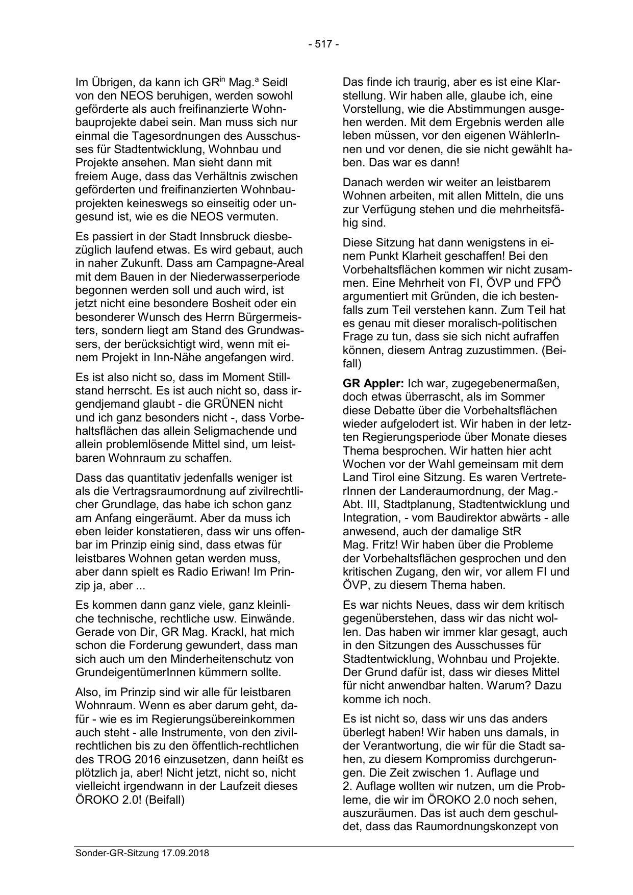 Im Übrigen, da kann ich GRin Mag.a Seidl