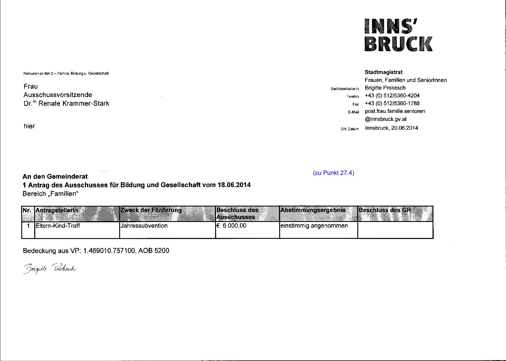 Retouren an MA V - Familie, Bildung u. Gesellschaft