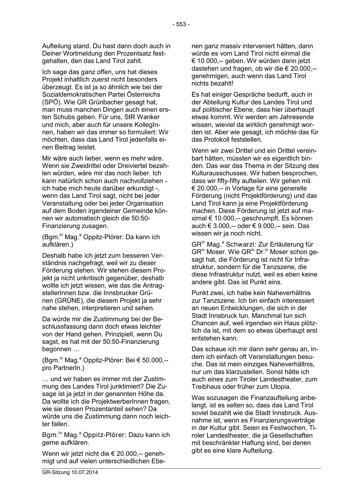 dastehen und fragen, ob wir die € 20.000,-genehmigen, auch wenn das Land Tirol