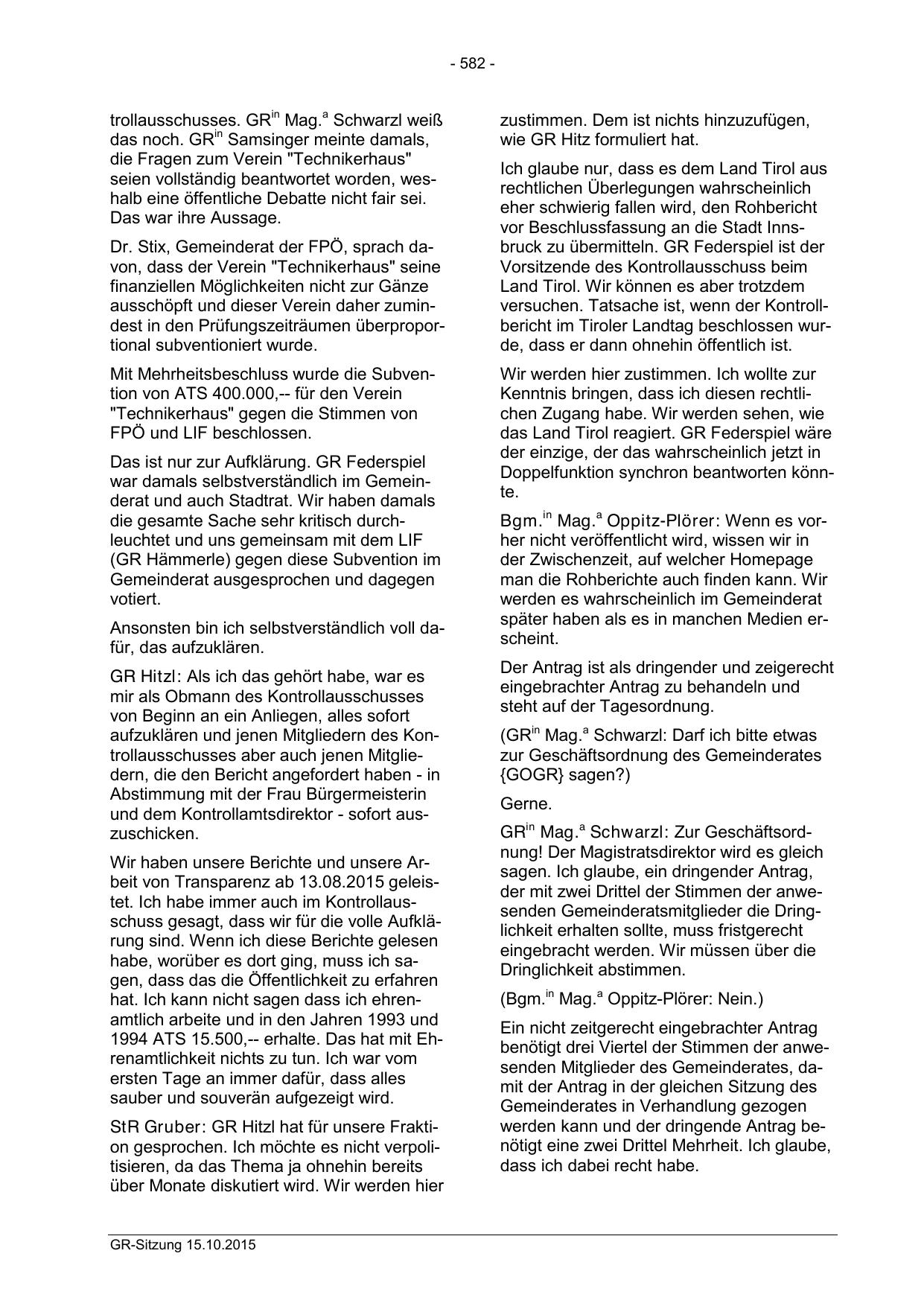 vor Beschlussfassung an die Stadt Innsbruck zu übermitteln. GR Federspiel ist der