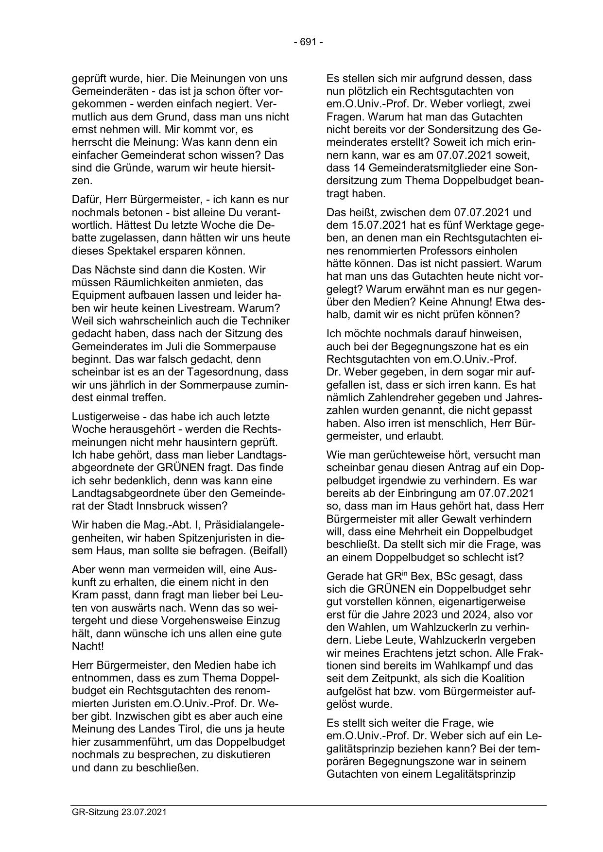 entnommen, dass es zum Thema Doppelbudget ein Rechtsgutachten des renommierten Juristen em.O.Univ.-Prof. Dr. Weber gibt. Inzwischen gibt es aber auch eine