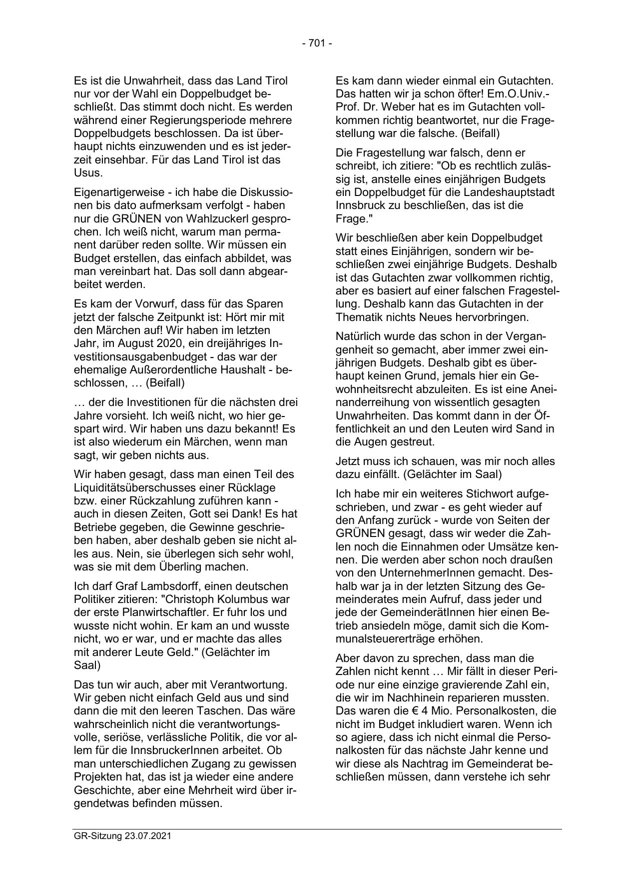 Doppelbudgets beschlossen. Da ist überhaupt nichts einzuwenden und es ist jederzeit einsehbar. Für das Land Tirol ist das