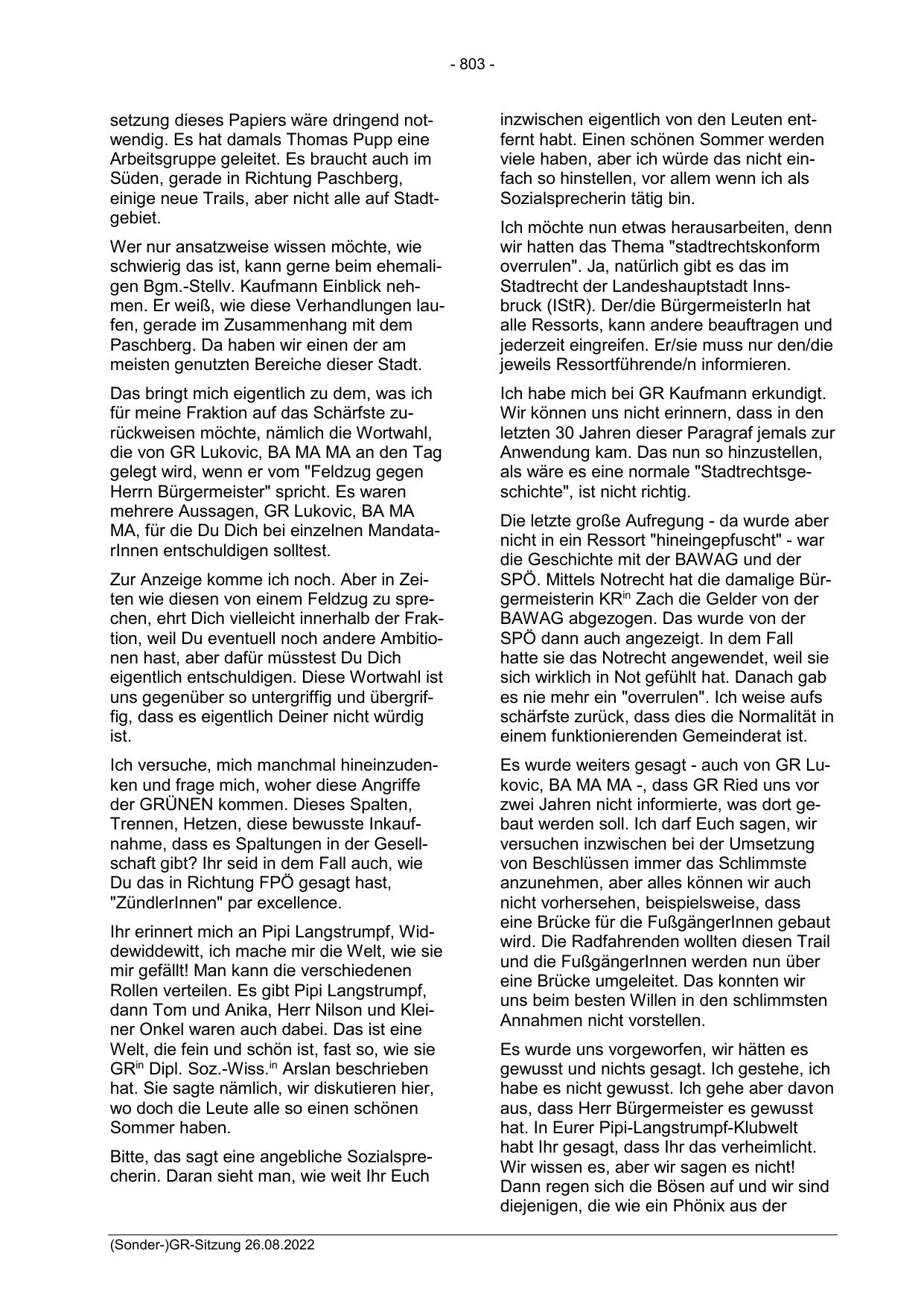 Es wurde weiters gesagt - auch von GR Lukovic, BA MA MA -, dass GR Ried uns vor