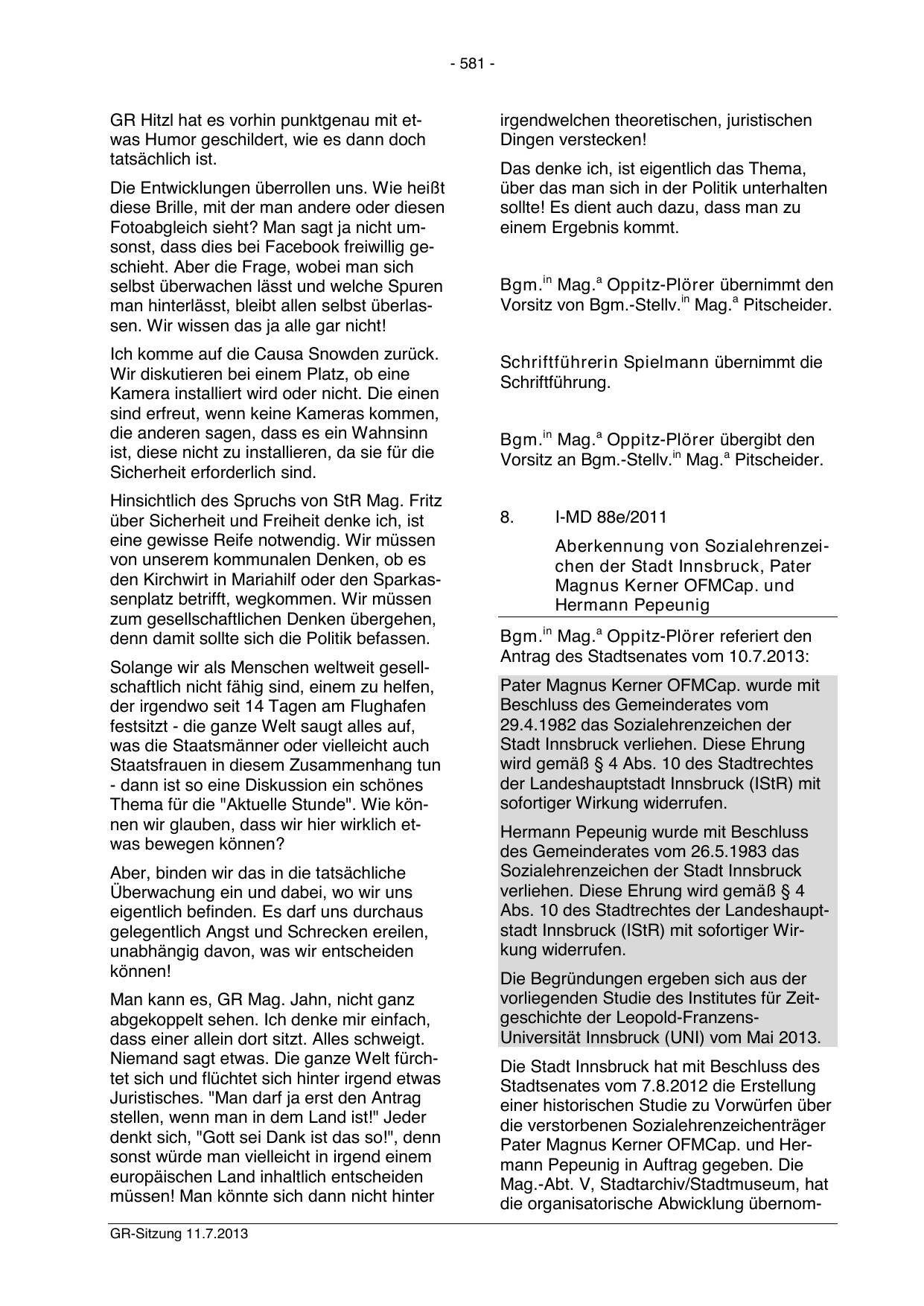 Aberkennung von Sozialehrenzeichen der Stadt Innsbruck, Pater