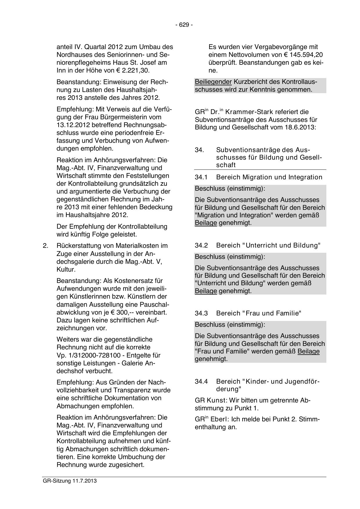 GR Kunst: Wir bitten um getrennte Abstimmung zu Punkt 1.