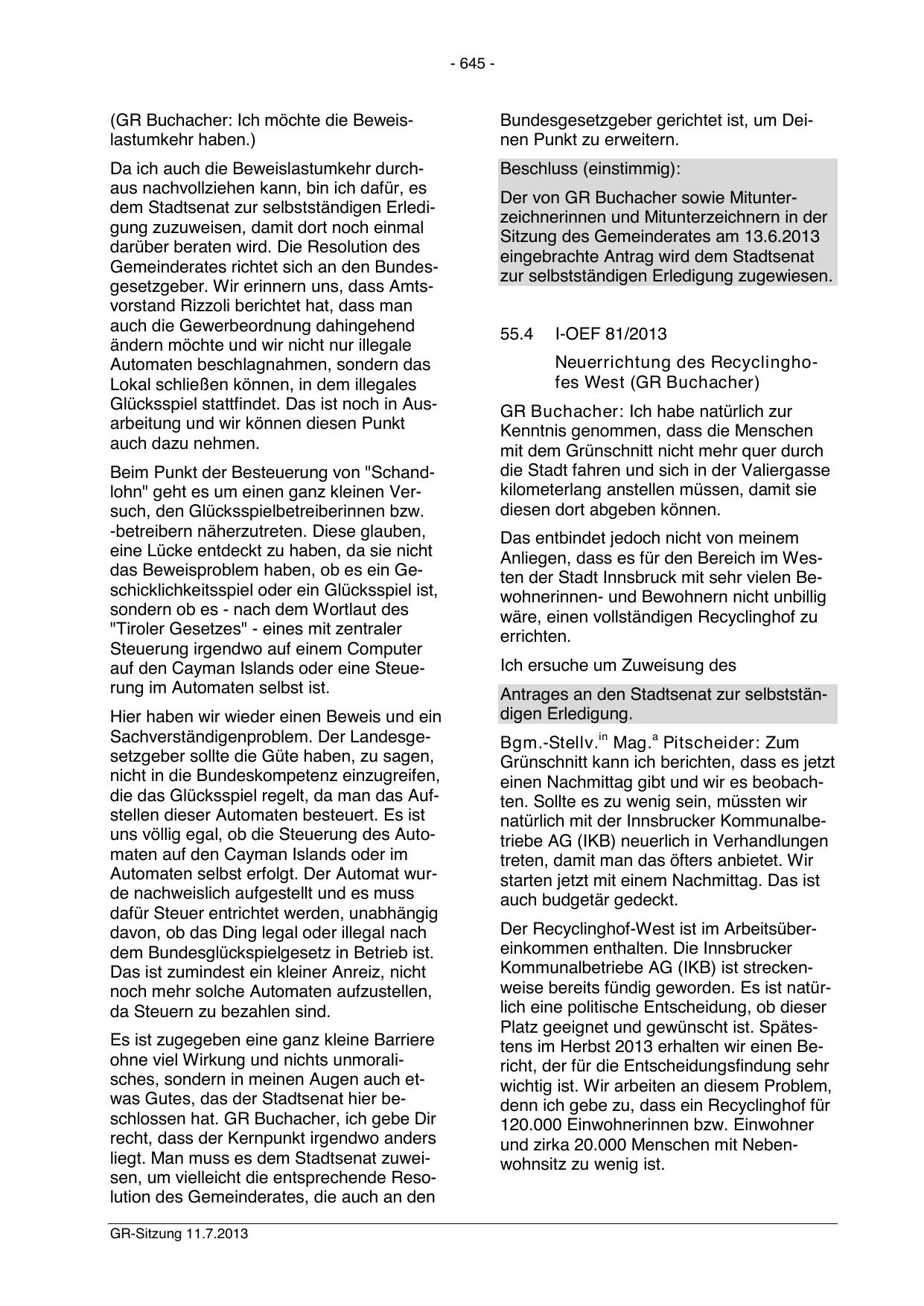 ohne viel Wirkung und nichts unmoralisches, sondern in meinen Augen auch etwas Gutes, das der Stadtsenat hier beschlossen hat. GR Buchacher, ich gebe Dir