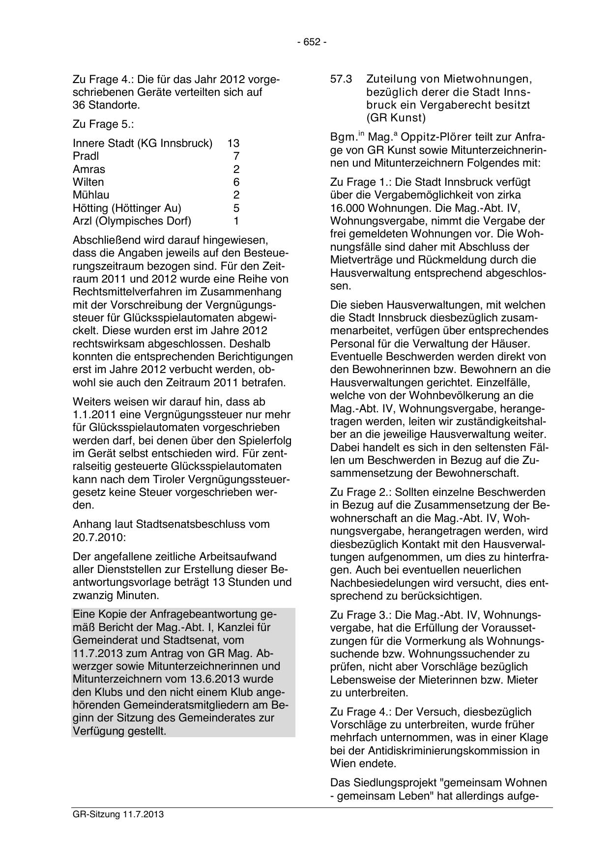 11.7.2013 zum Antrag von GR Mag. Abwerzger sowie Mitunterzeichnerinnen und
