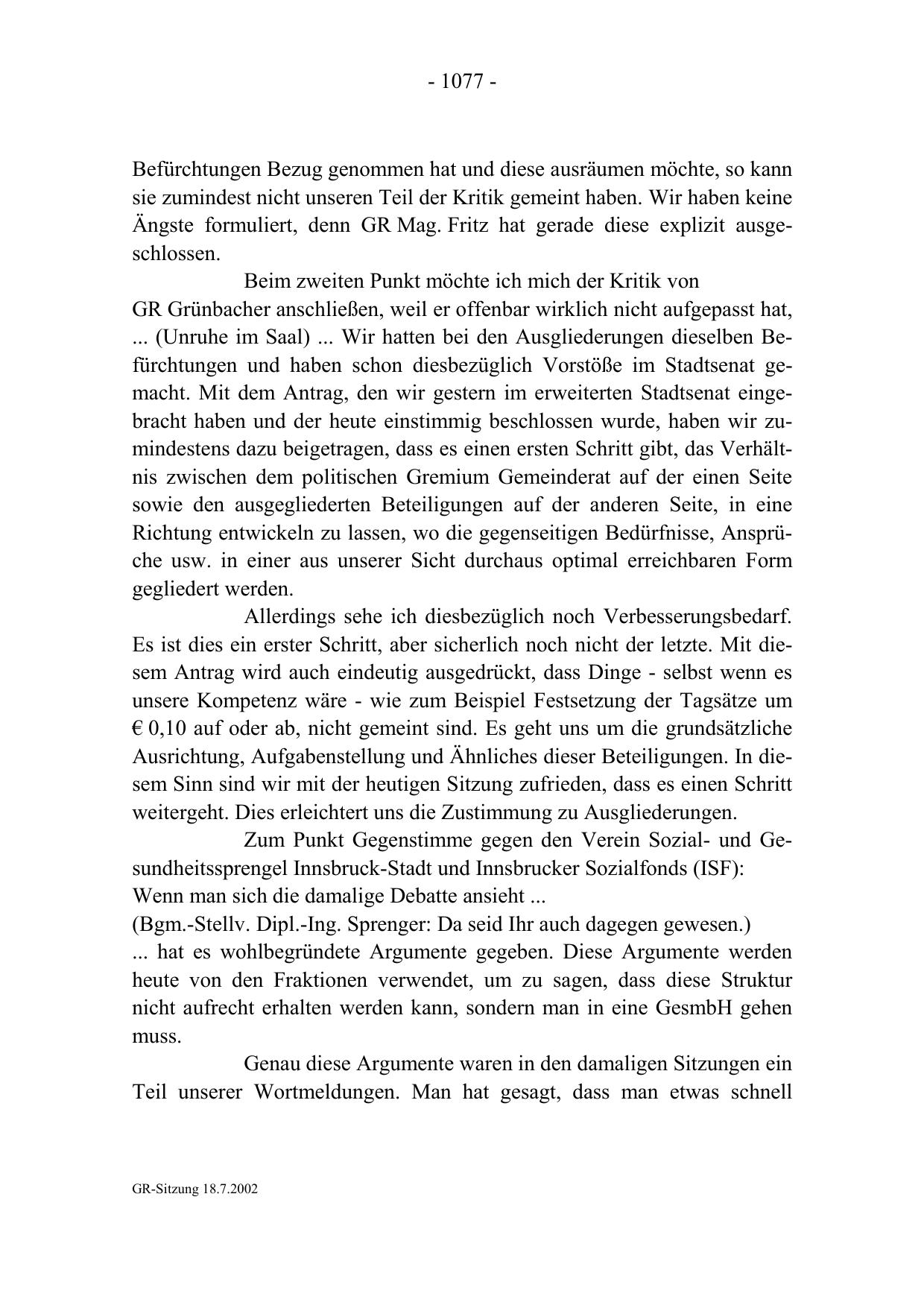 GR Grünbacher anschließen, weil er offenbar wirklich nicht aufgepasst hat,