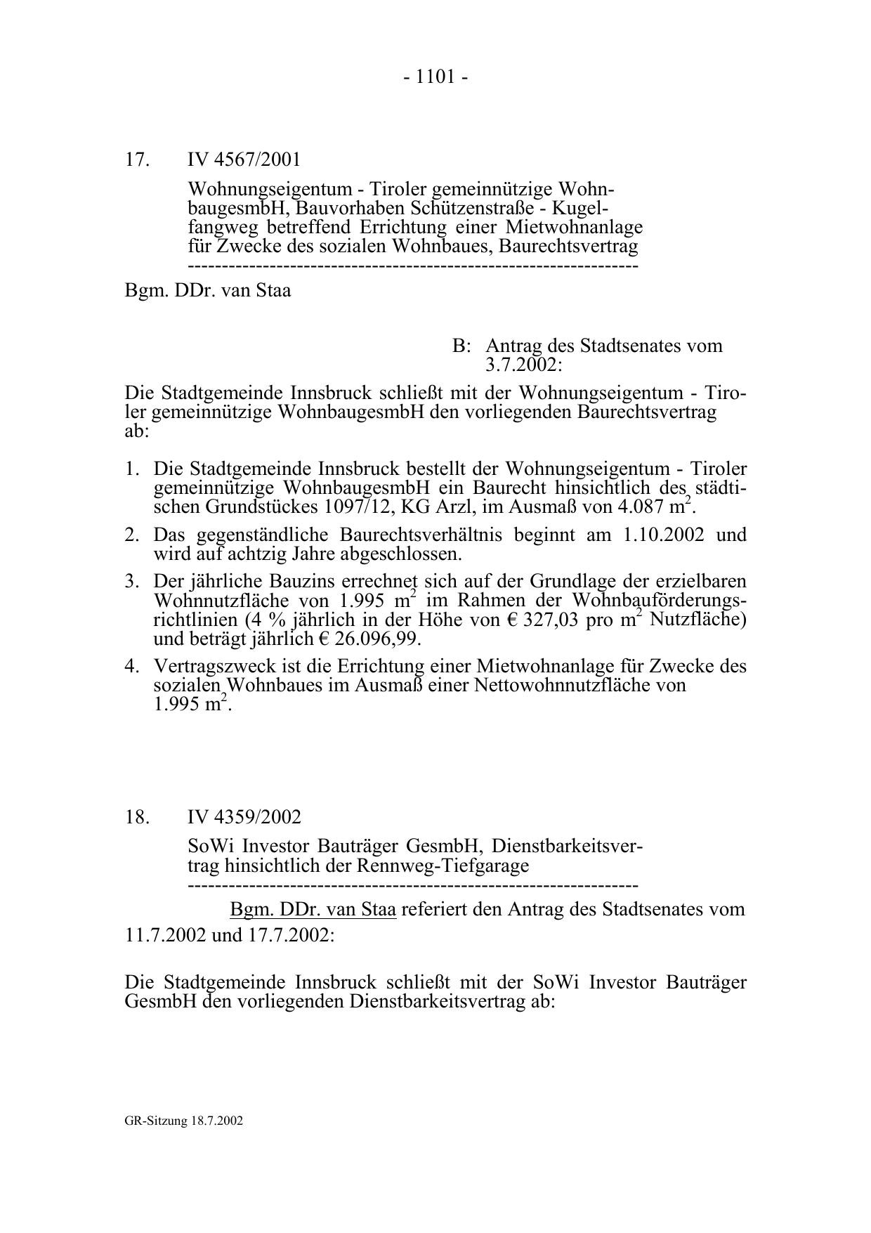 -----------------------------------------------------------------Bgm. DDr. van Staa referiert den Antrag des Stadtsenates vom