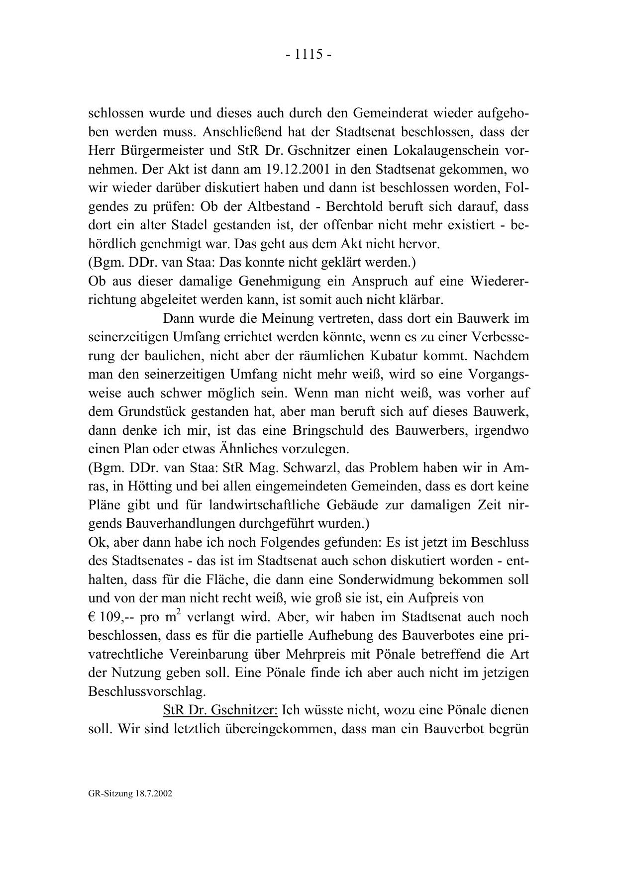 Herr Bürgermeister und StR Dr. Gschnitzer einen Lokalaugenschein vornehmen. Der Akt ist dann am 19.12.2001 in den Stadtsenat gekommen, wo