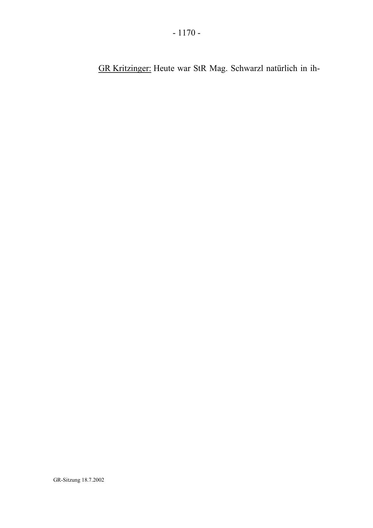 GR Kritzinger: Heute war StR Mag. Schwarzl natürlich in ih-