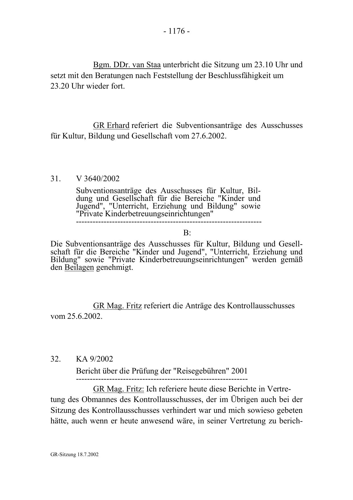 -------------------------------------------------------------GR Mag. Fritz: Ich referiere heute diese Berichte in Vertretung des Obmannes des Kontrollausschusses, der im Übrigen auch bei der