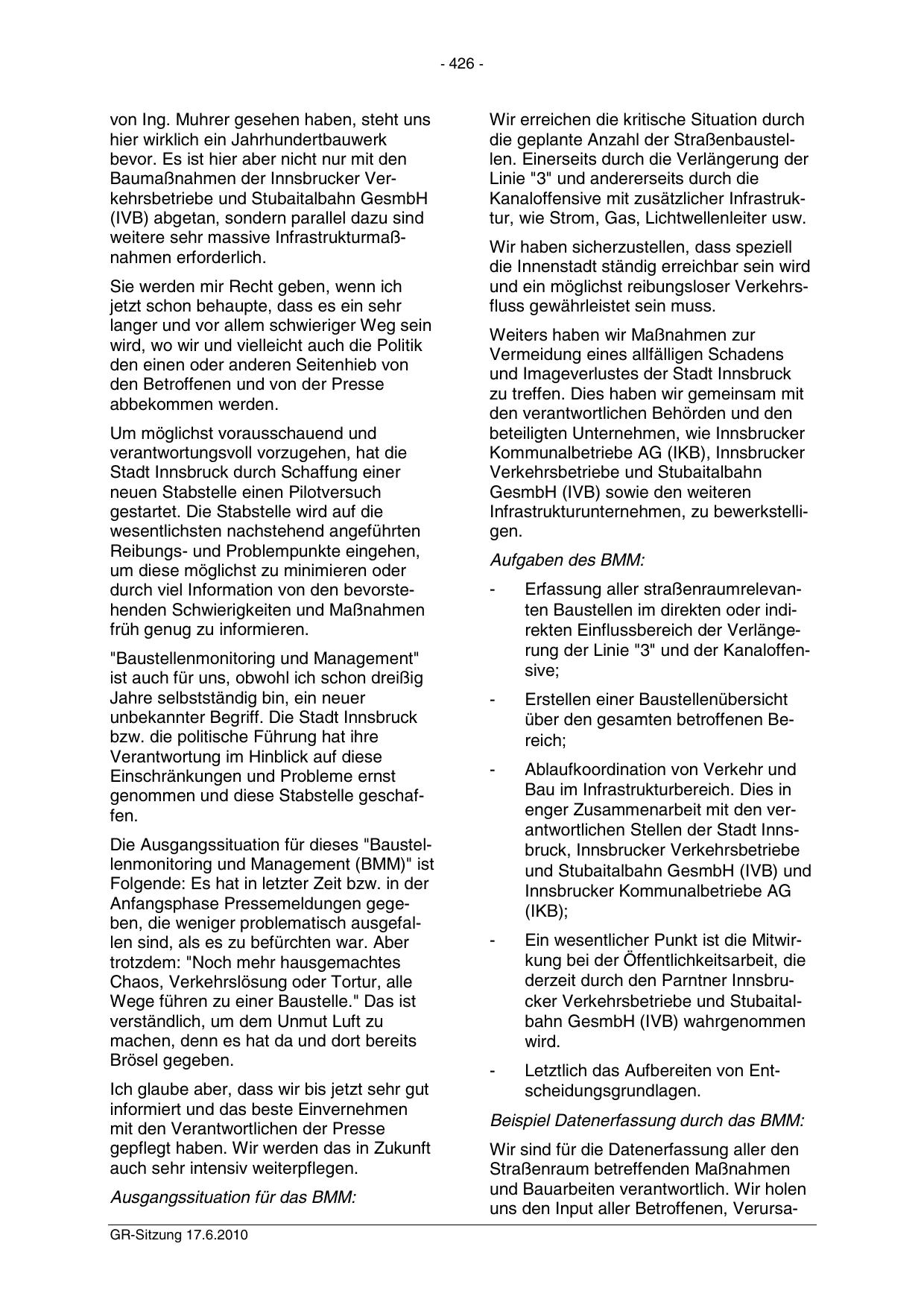 enger Zusammenarbeit mit den verantwortlichen Stellen der Stadt Innsbruck, Innsbrucker Verkehrsbetriebe
