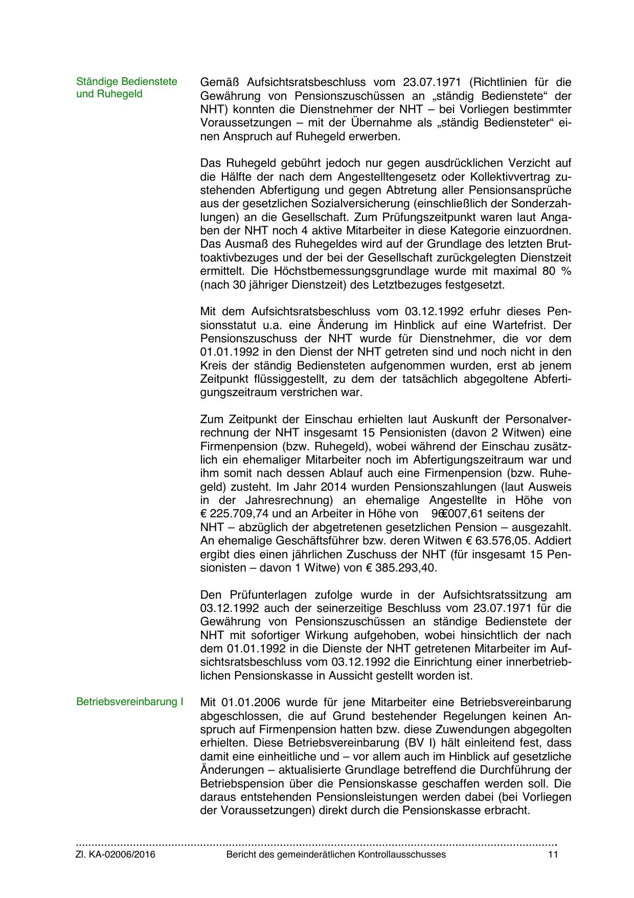 aus der gesetzlichen Sozialversicherung (einschließlich der Sonderzahlungen) an die Gesellschaft. Zum Prüfungszeitpunkt waren laut Angaben der NHT noch 4 aktive Mitarbeiter in diese Kategorie einzuordnen.