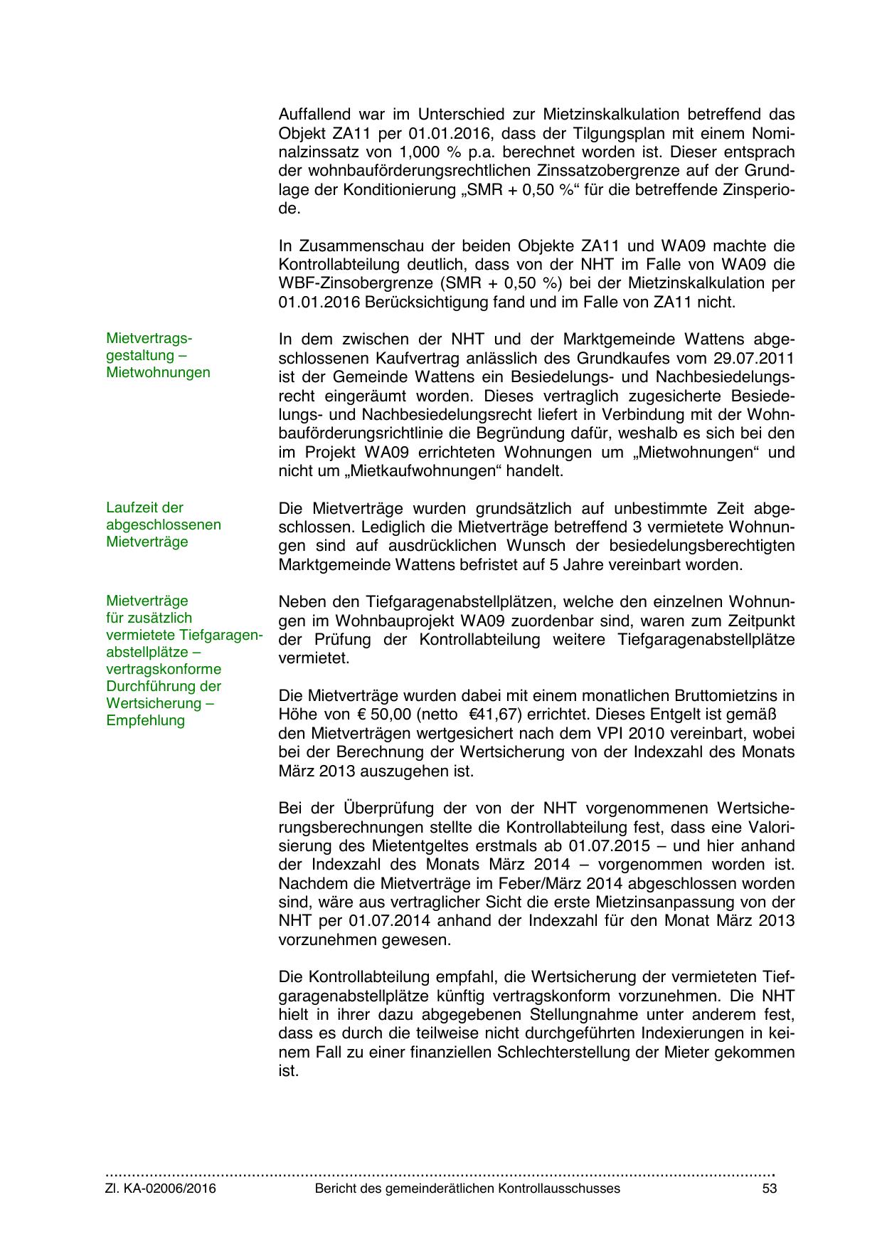 Die Kontrollabteilung empfahl, die Wertsicherung der vermieteten Tiefgaragenabstellplätze künftig vertragskonform vorzunehmen. Die NHT