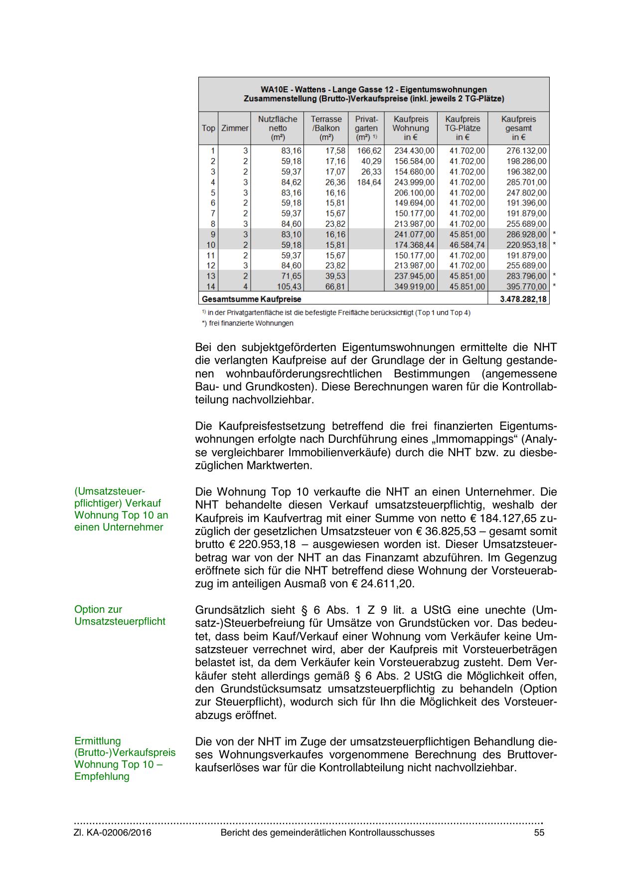 Die von der NHT im Zuge der umsatzsteuerpflichtigen Behandlung dieses Wohnungsverkaufes vorgenommene Berechnung des Bruttoverkaufserlöses war für die Kontrollabteilung nicht nachvollziehbar.
