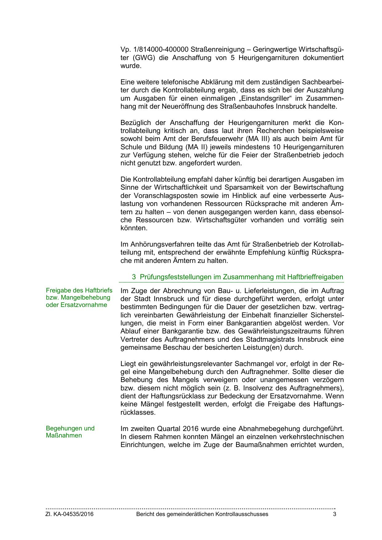 der Stadt Innsbruck und für diese durchgeführt werden, erfolgt unter